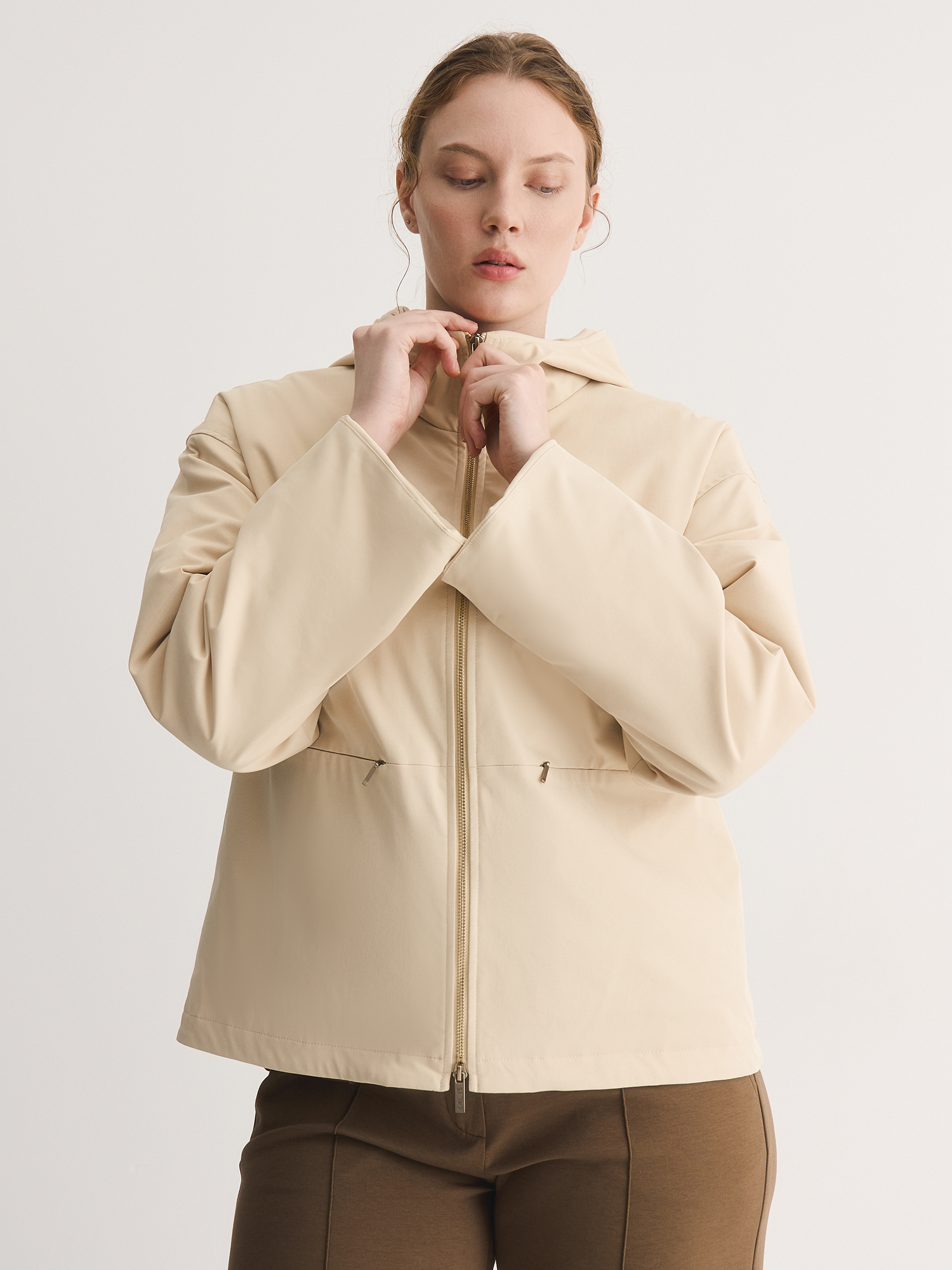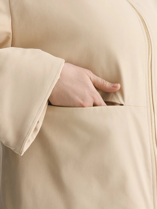 Выполнили универсальную модель в одном из самых спокойных оттенков бежевого, с белой подкладкой, на встречной молнии и с удобными бегунками. Куртка выполнена из качественной плащевки с влагозащитной пропиткой и утеплена качественным синтепоном.