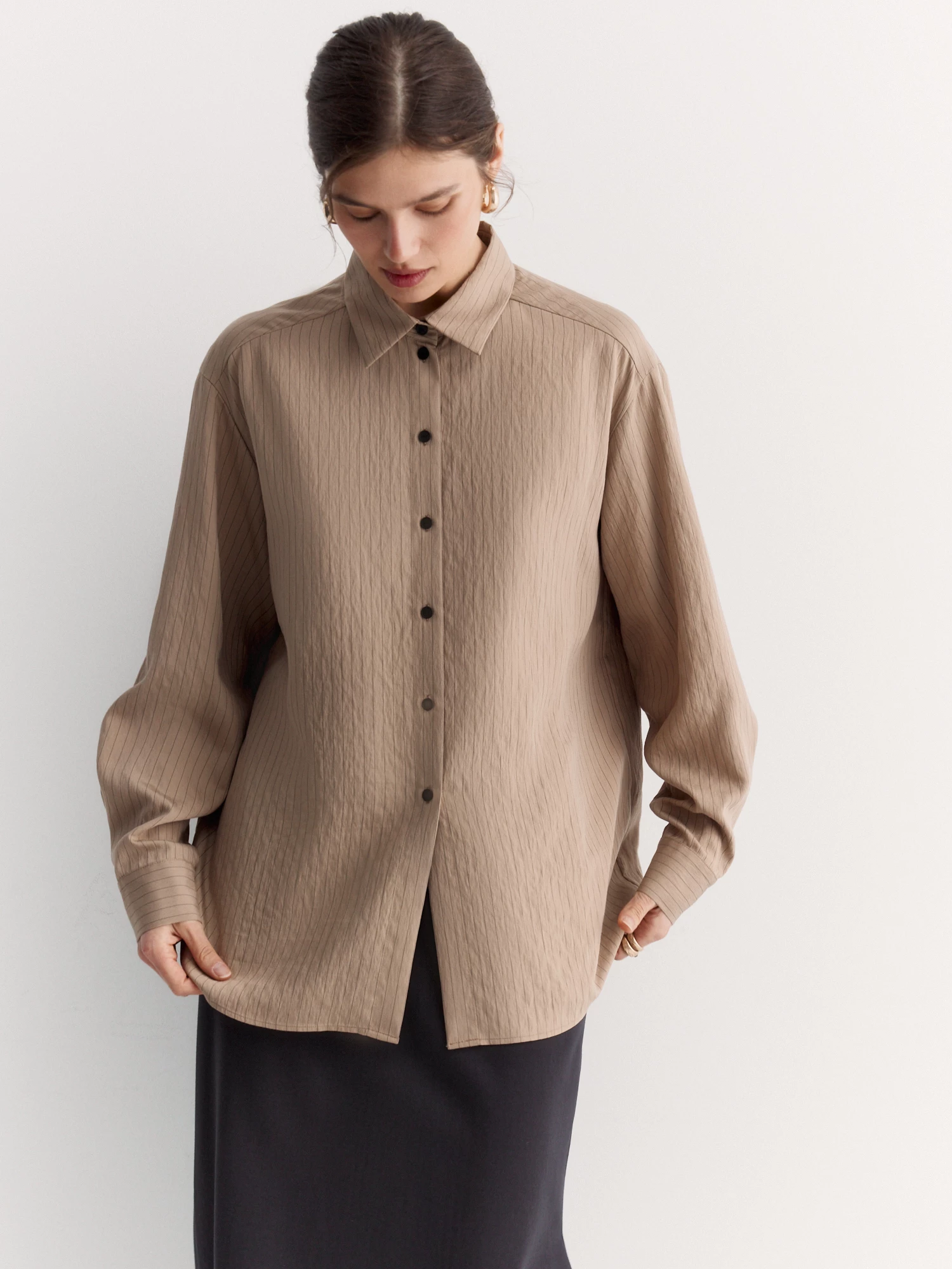 Юбка в благородном коричневом прекрасно сочетается с жакетом в стиле кимоно JC0198.