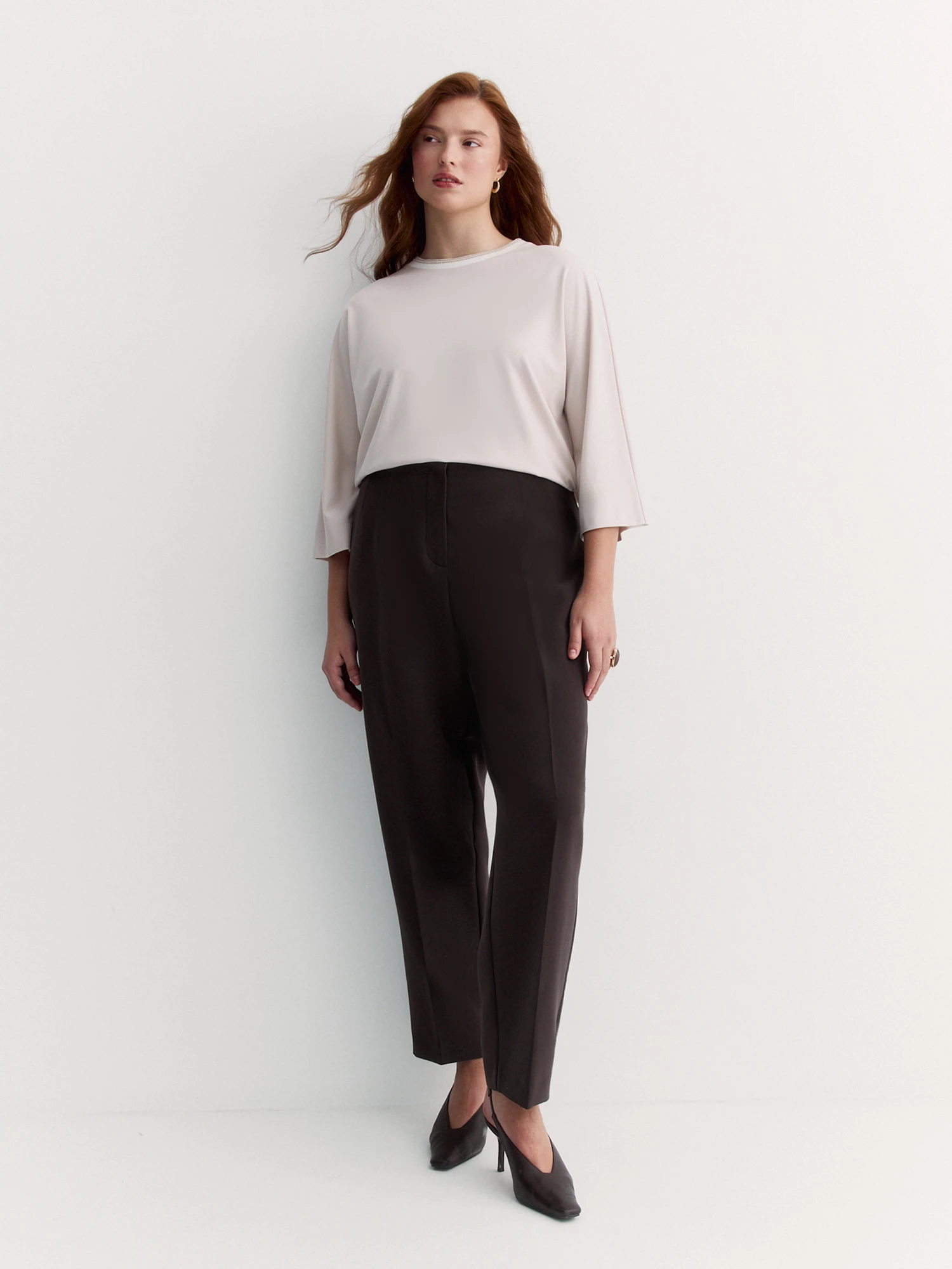Этот жемчужный лонгслив – отличная база для повседневных образов: лёгкий, комфортный и при этом достаточно стильный, чтобы выглядеть уместно в любой ситуации.