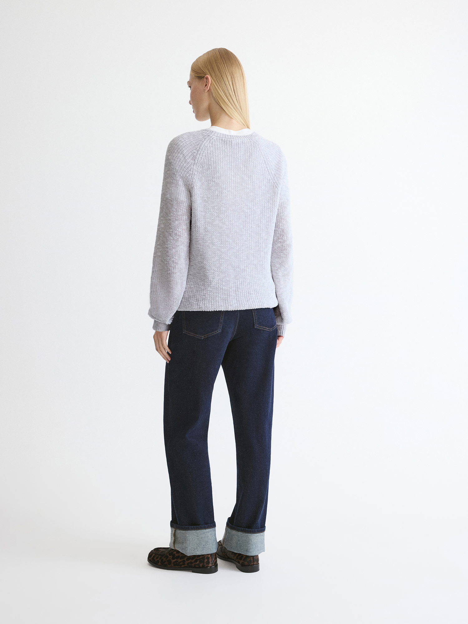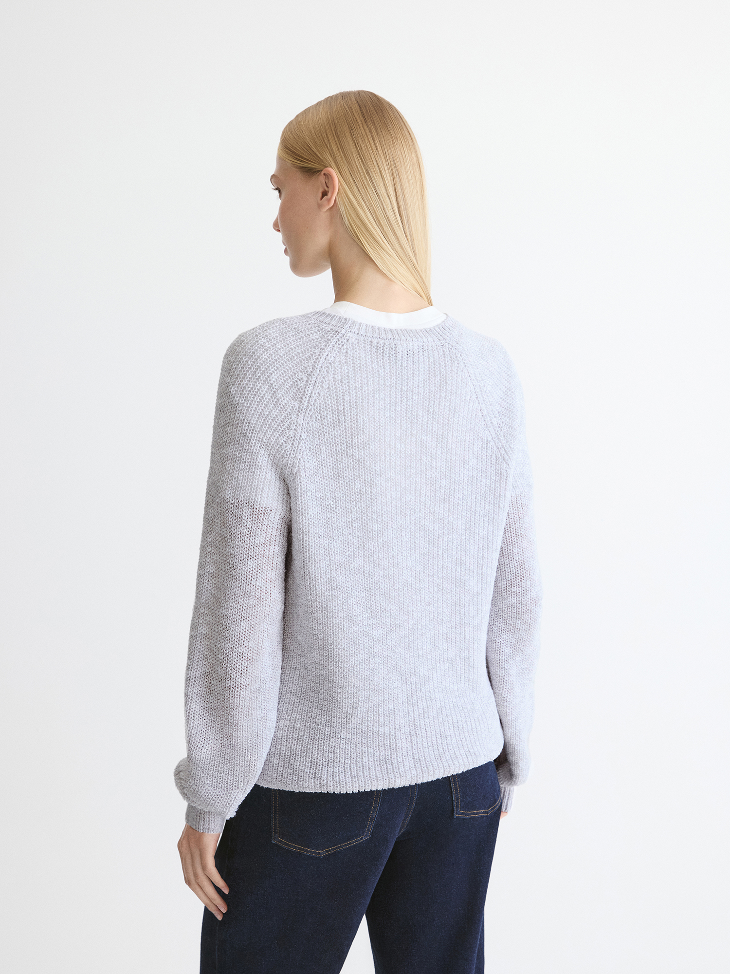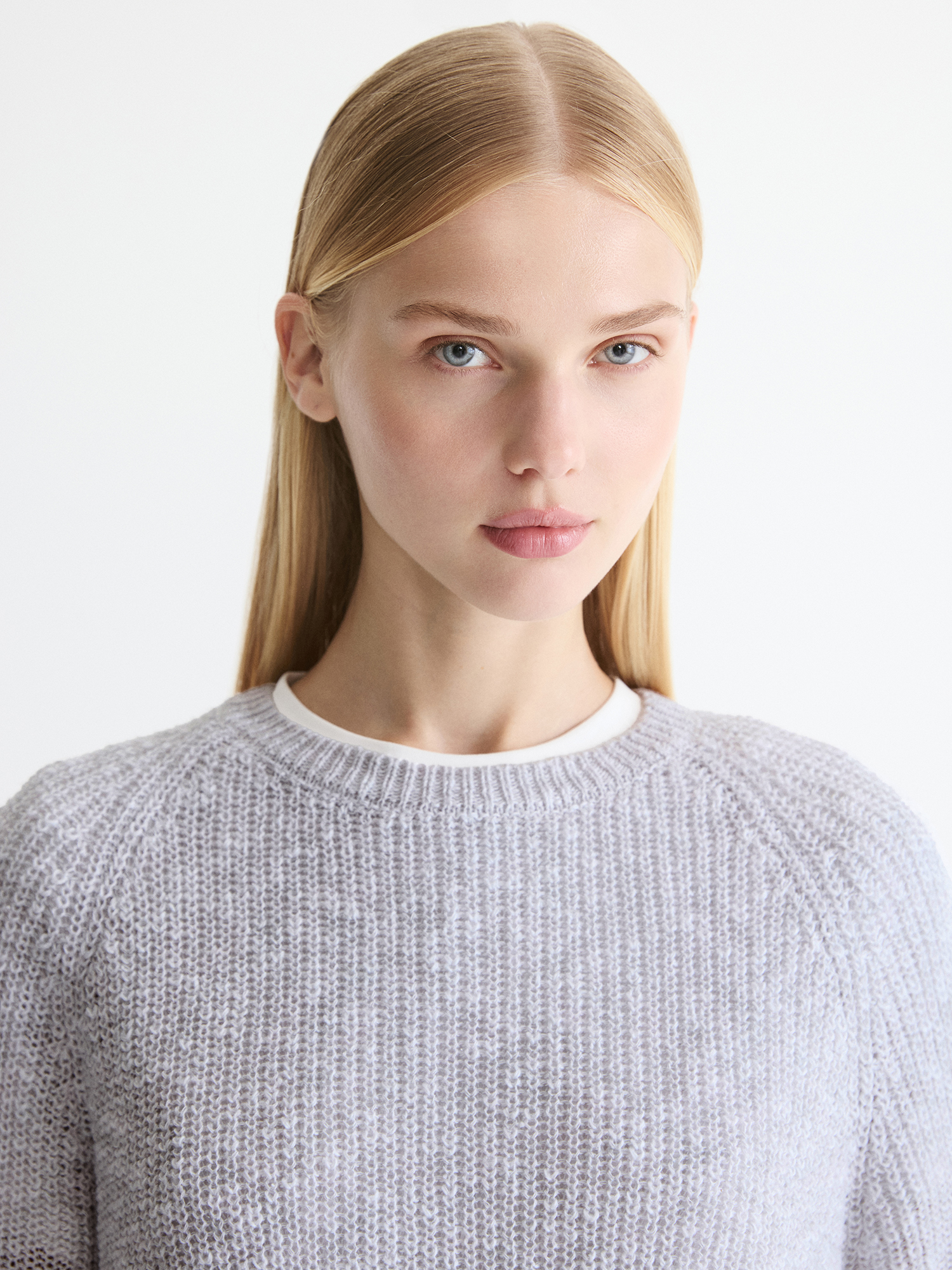 Воздушный светло-серый джемпер с мраморным меланжем - уютный и стильный. Выбрали для модели средний объем, круглый вырез и комфортный рукав-реглан. Приятная к телу пряжа с высоким содержанием хлопка - воздухопроницаема и гипоаллергенна. Мы заботимся об окружающей среде и используем пряжу из переработанного хлопка - возможна миграция ворса.
