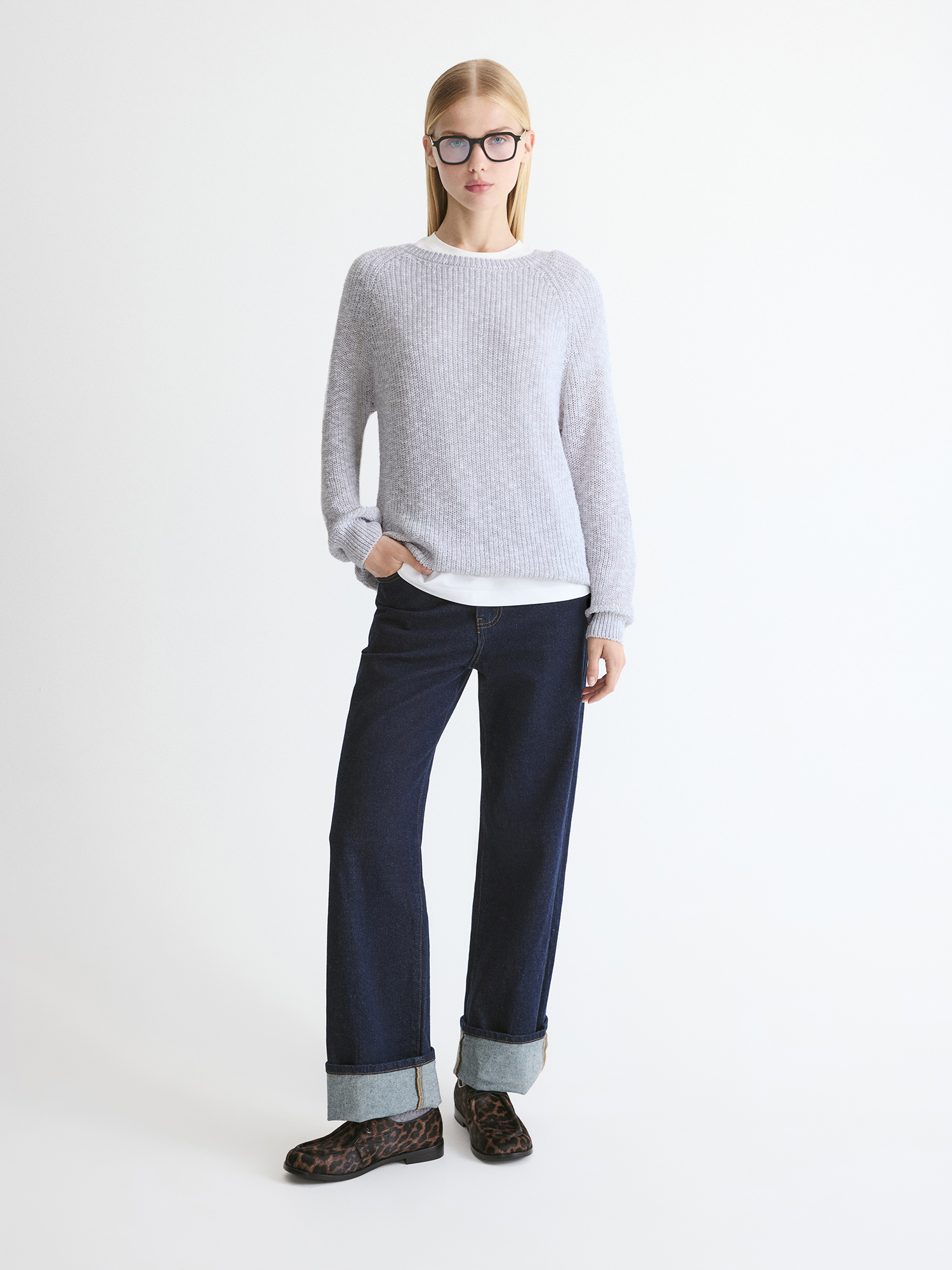 Миксуйте джемпер из хлопковой меланжевой пряжи с любимыми базовыми вещами - он подарит мягкость и тепло в прохладные дни.