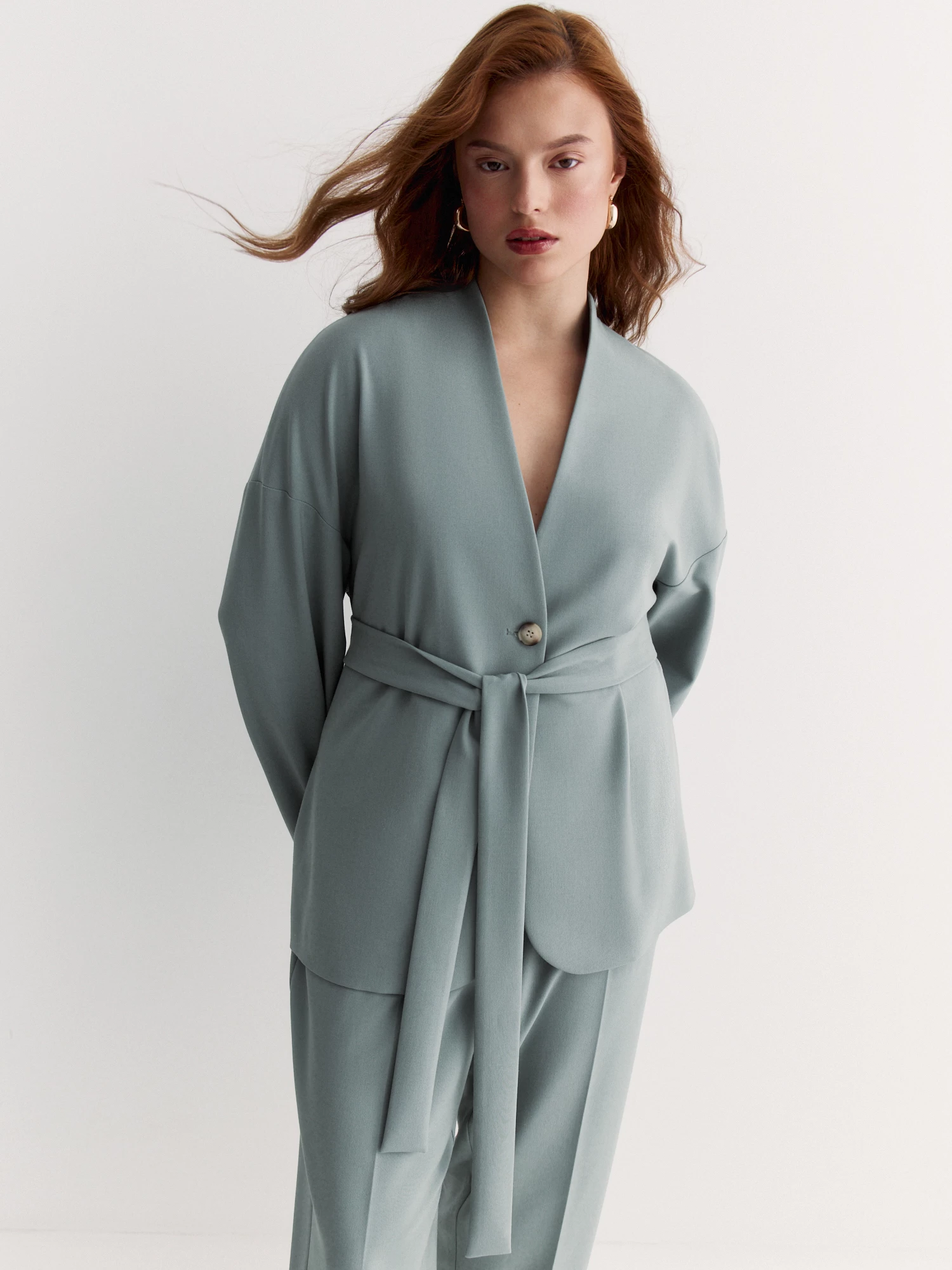 Пиджак в стиле кимоно – облегченная модель без подкладки из поливискозной костюмной ткани.