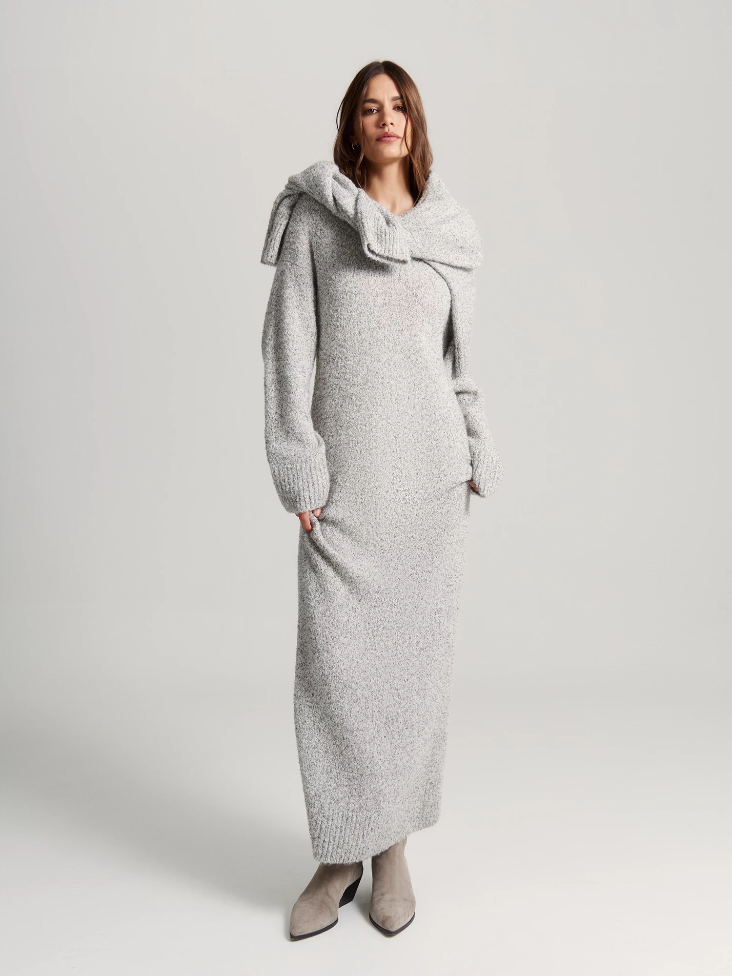 Платье прямого силуэта из мягкой пряжи подарит уют в холодный сезон. Оно создано с заботой о природе, ведь в составе переработанные волокна. Шерсть мериноса способствует хорошей терморегуляции и приятна к телу, а шерсть альпаки прочная, дышащая и хорошо держит форму.