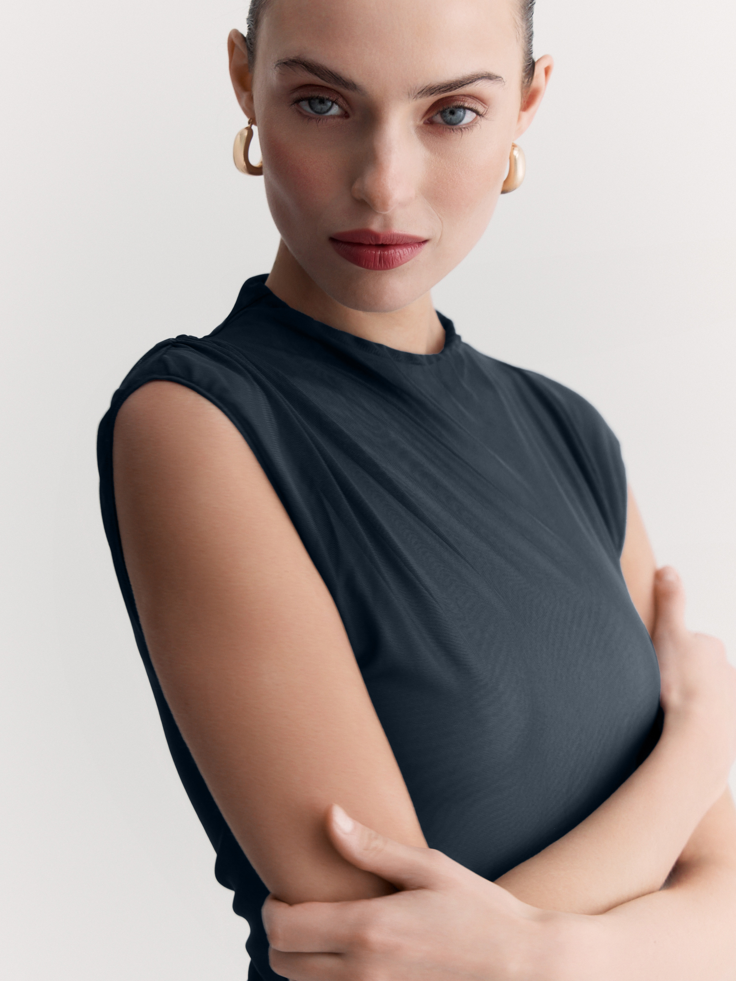 Модель с высокой степенью прилегания — она создана, чтобы мягко обнимать фигуру, не создавая лишнего объема. Если вы предпочитаете более свободную посадку или находитесь между размерами — советуем выбрать размер больше.