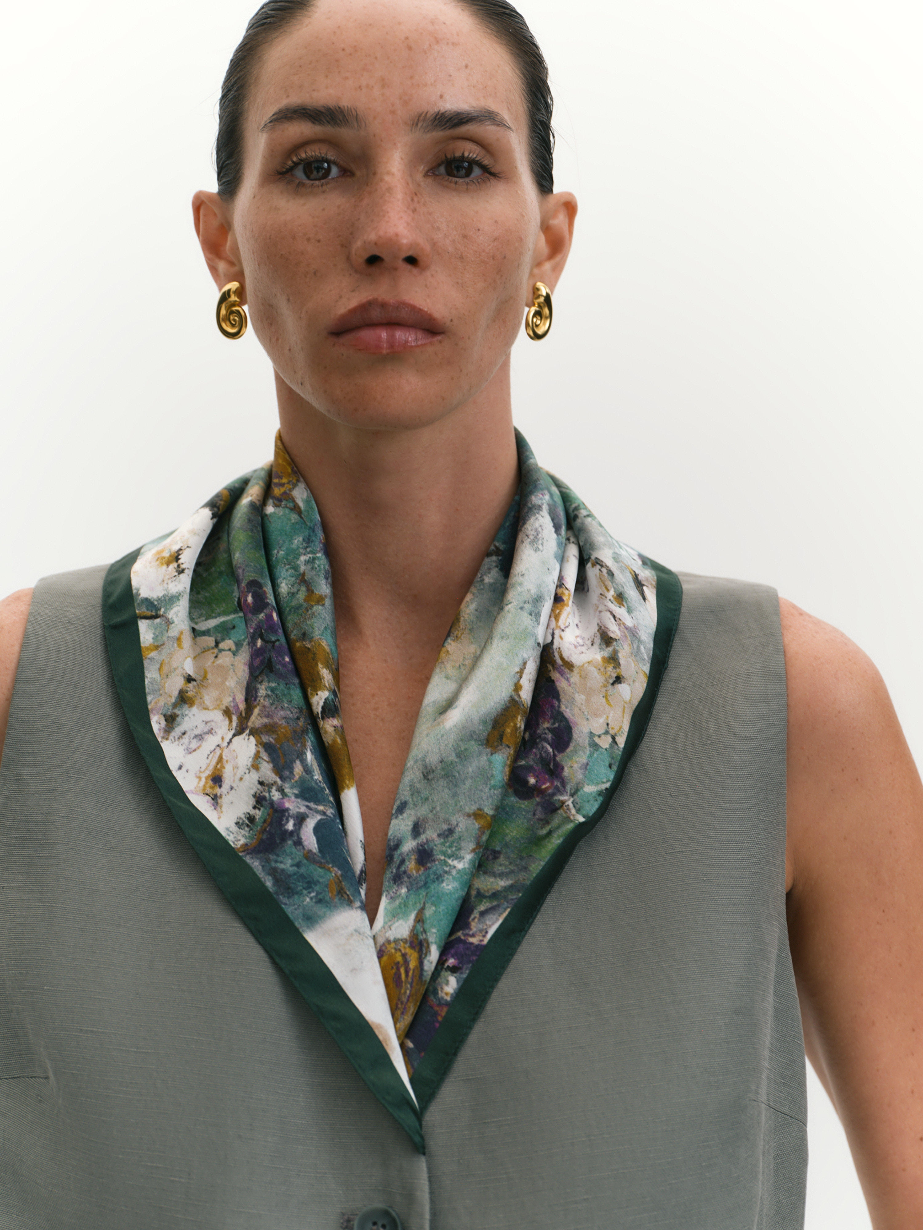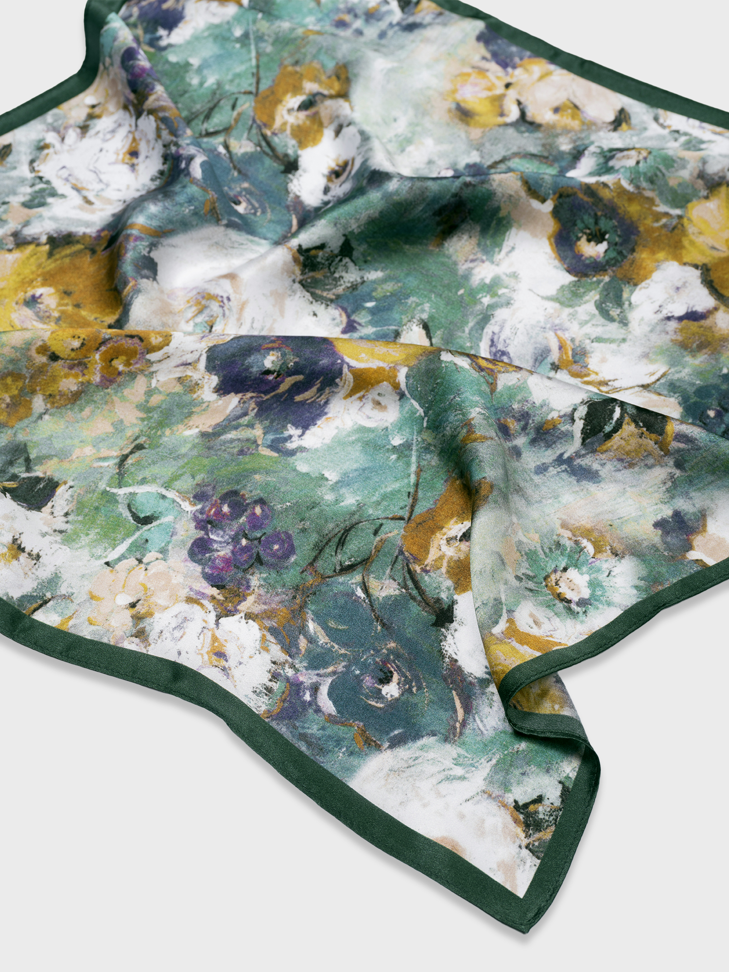 Шелковый женский платок - особый аксессуар, он является важной частью образа. Его можно надеть на голову как косынку, бандану, завязать как ободок. Платок, как ленту твилли, можно повязать на сумку с короткими ручками и классическим дизайном. Эффектный кусочек шелка в зелено-горчичных тонах, как-будто вышедший из-под кисти импрессиониста, можно носить как браслет, ожерелье (монистоплаток), продеть в шлевки брюк или джинсов. Известны случаю, когда платок с красивым рисунком использовали в дизайне интерьера, для декора стен - стильное, необычное решение. Красивый легкий платок подойдет на весну, на осень, на подарок маме, сестре, подруге.