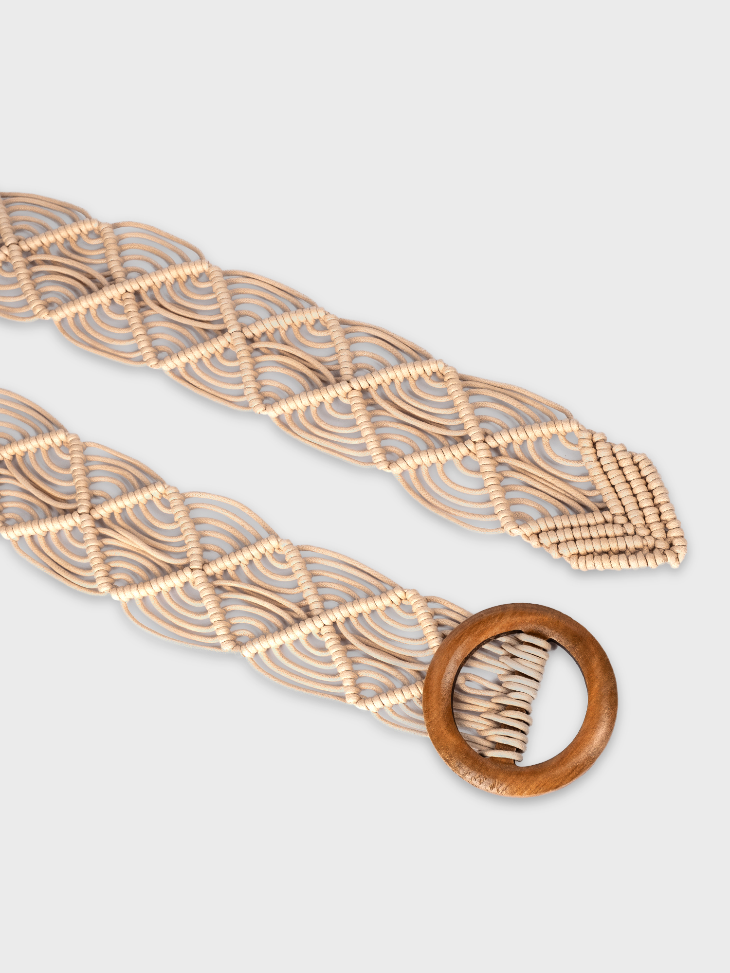 Светло-бежевый цвет сочетается с большинством оттенков актуального гардероба. Пояс можно носить с платьями и блузами, добавляя луку индивидуальности. Ширина изделия - 6,5 см.