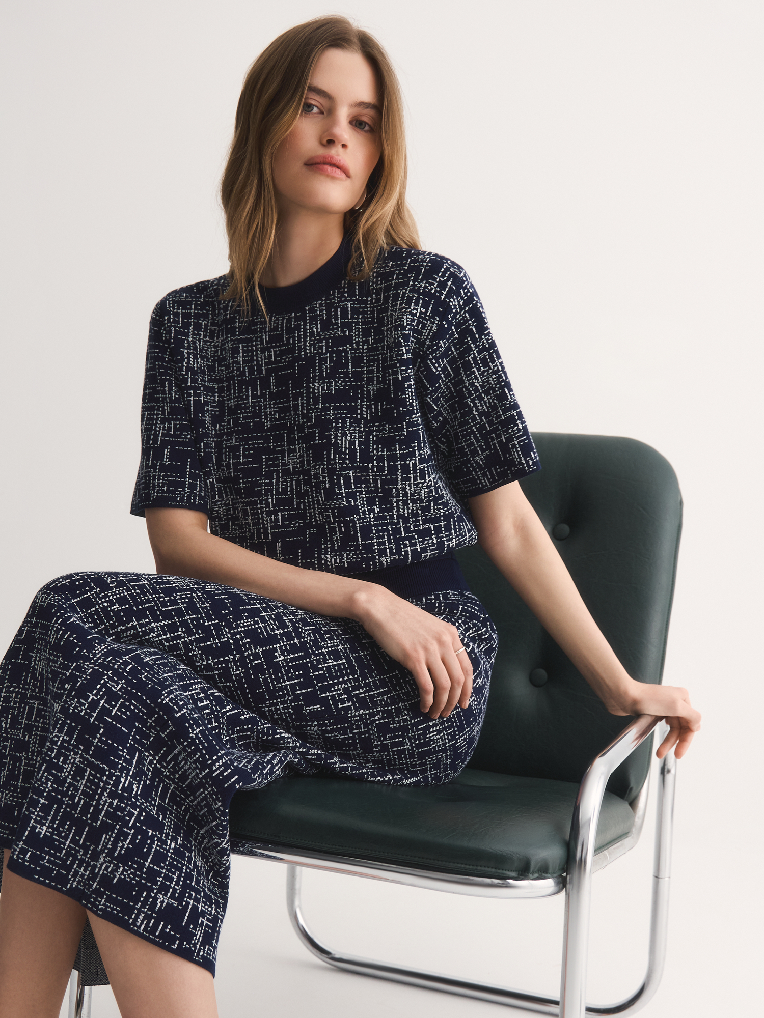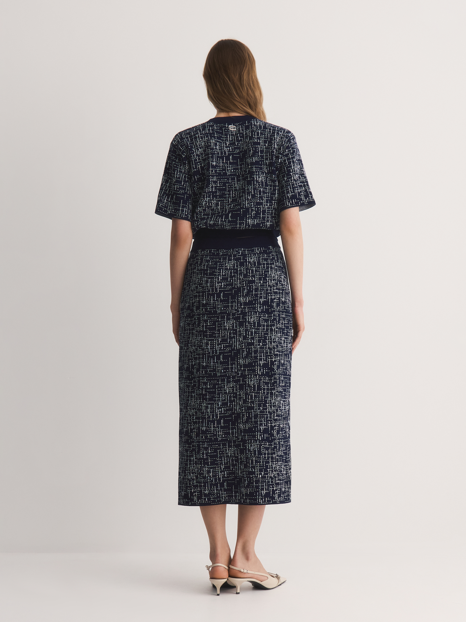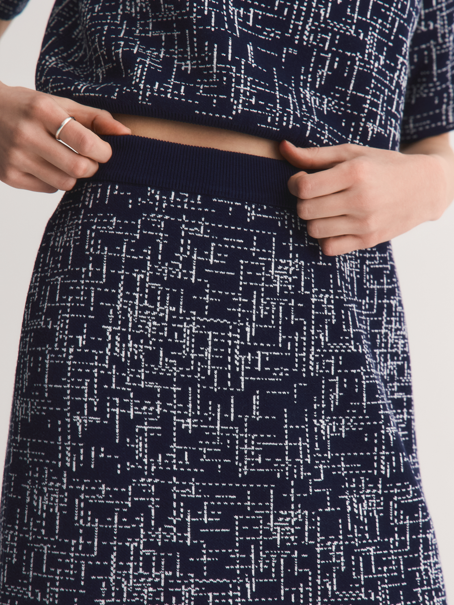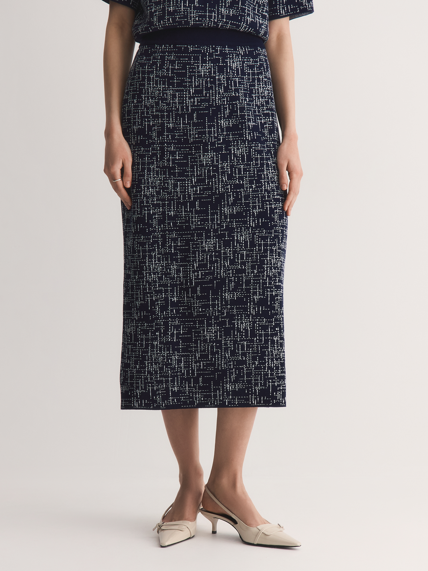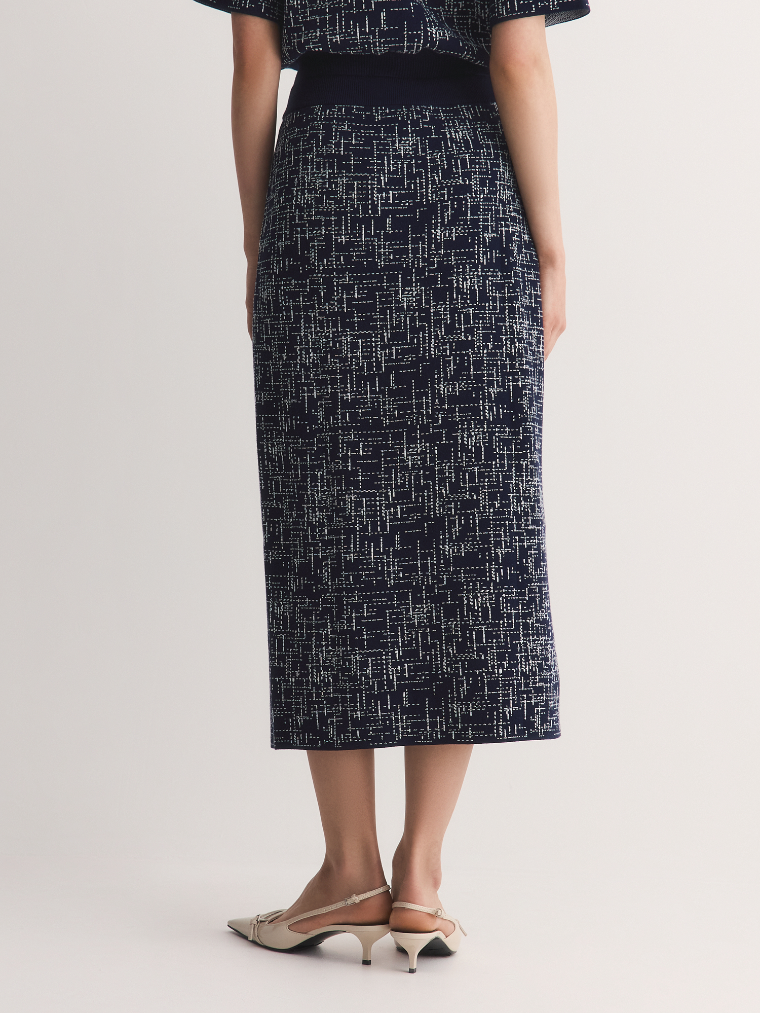 Юбка высокого класса вязки выполнена жаккардовым переплетением. Плотное эластичное вязаное полотно держит форму и не вытягивается — юбка будет выглядеть аккуратно даже после долгой носки. Удобная резинка по талии мягко облегает, не сдавливая, и обеспечивает комфорт в течение всего дня.
