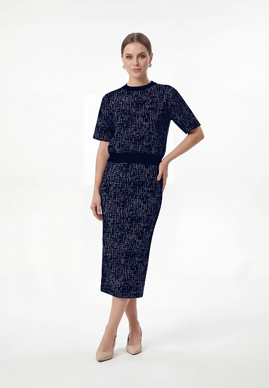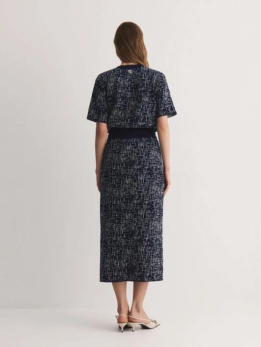 Бренд: ElisЦвет: Темно-синийСостав: Вискоза - 62%, Полиэстер - 38%Артикул: SK0613VРазмер на модели: 44Коллекция: ПРОБУЖДЕНИЕ