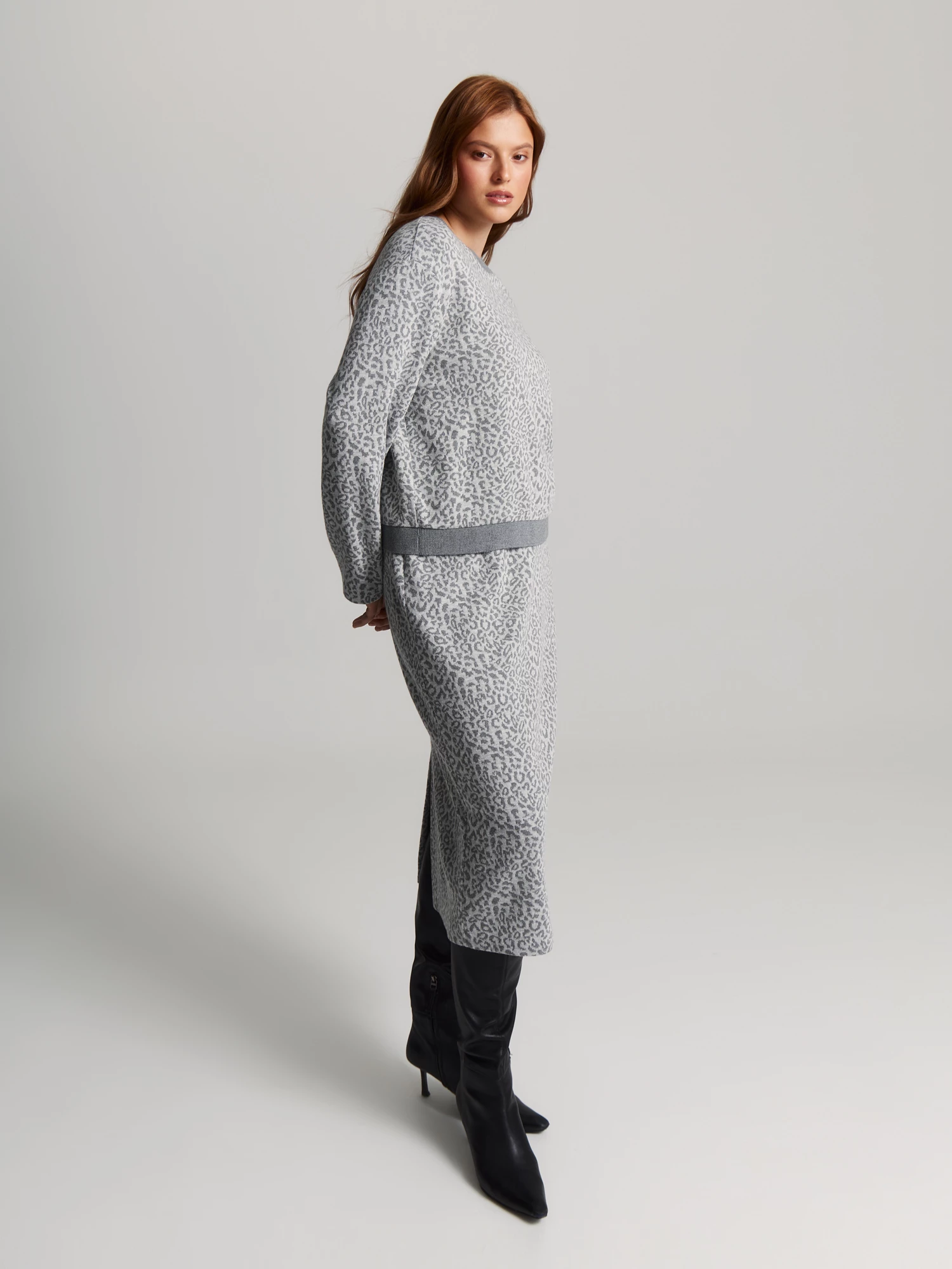 Стильный леопардовый принт в серой гамме выглядит эффектно и универсален в сочетаниях. Юбка легко сочетается с однотонными блузами, топами или водолазками, а также с блузой BL1706K.