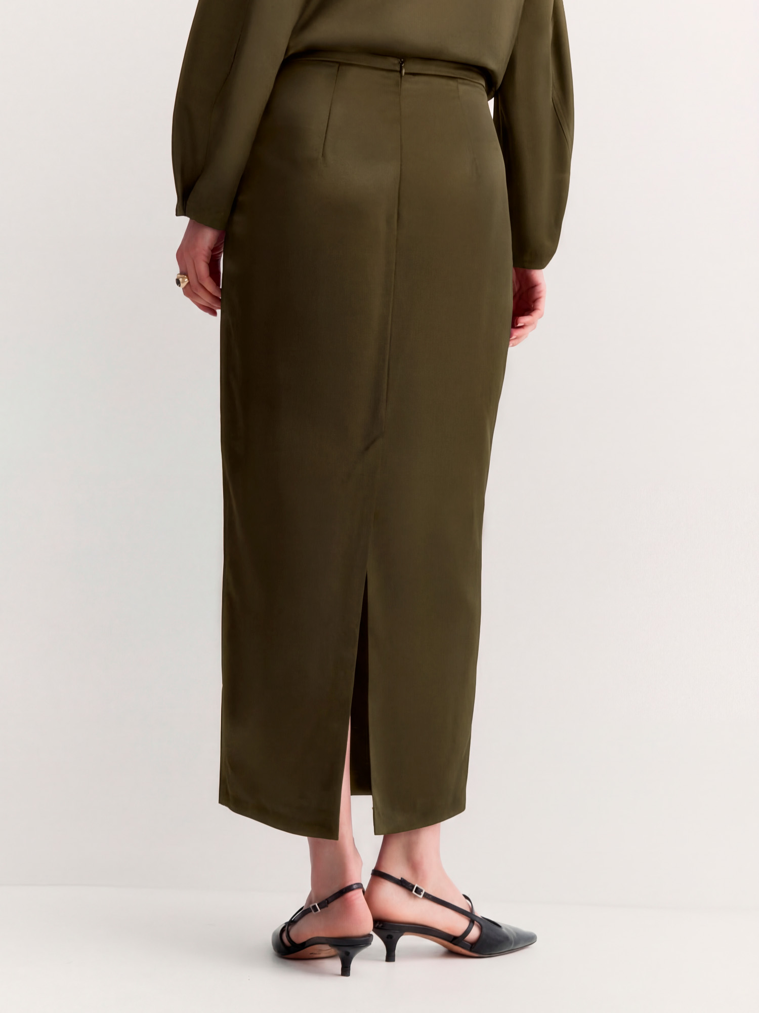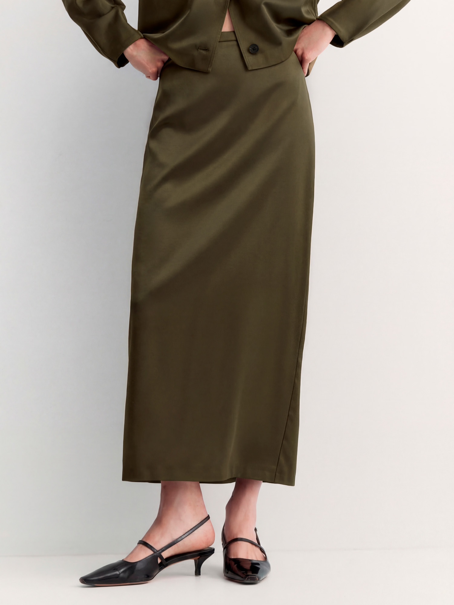 Юбка в благородном оливковом оттенке прекрасно дополнит пиджак JC0193.