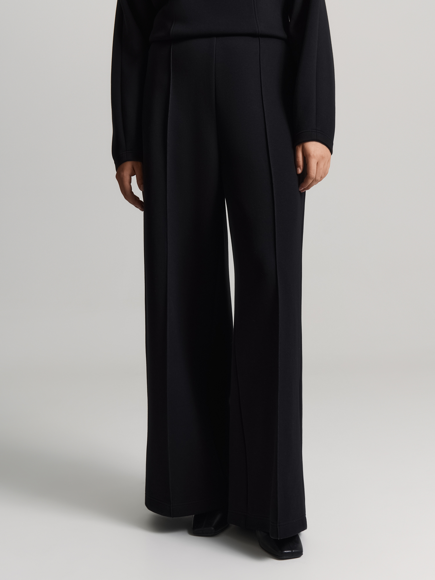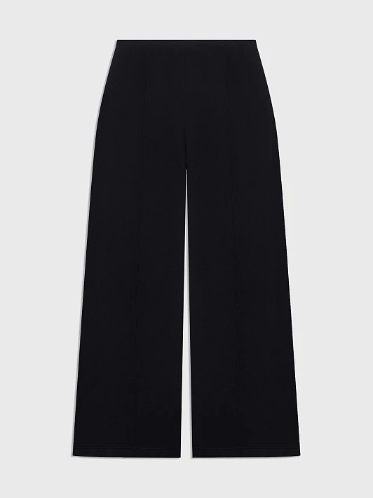 Брюки прямого силуэта сшиты из прочного и комфортного трикотажа "пике". Пике хорошо тянется, удобно сидит и позволяет коже дышать.