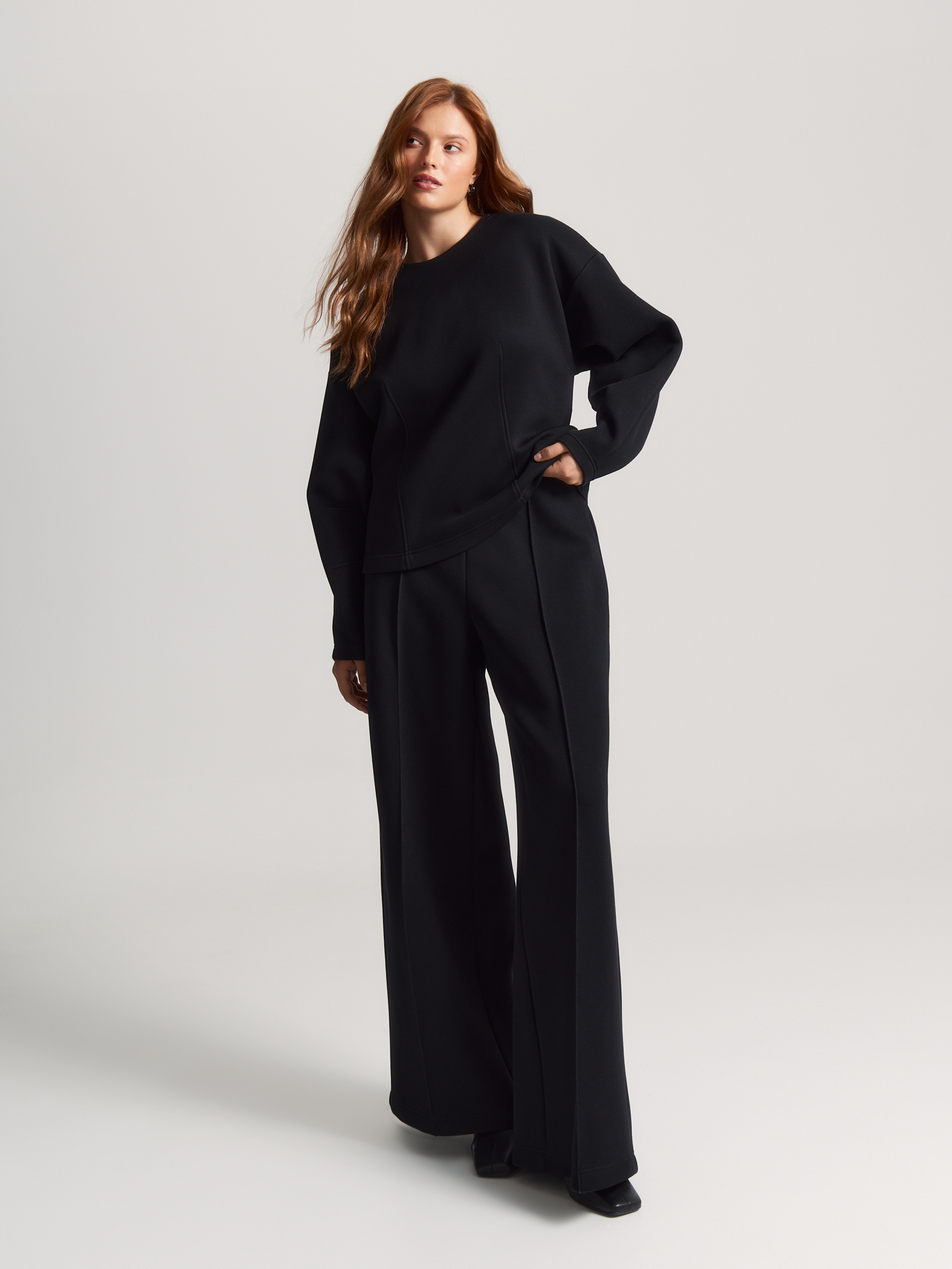 Классический чёрный цвет делает брюки универсальными. Их можно носить с блузой BL1671K, футболками или свитерами для офиса, прогулок или повседневных образов.