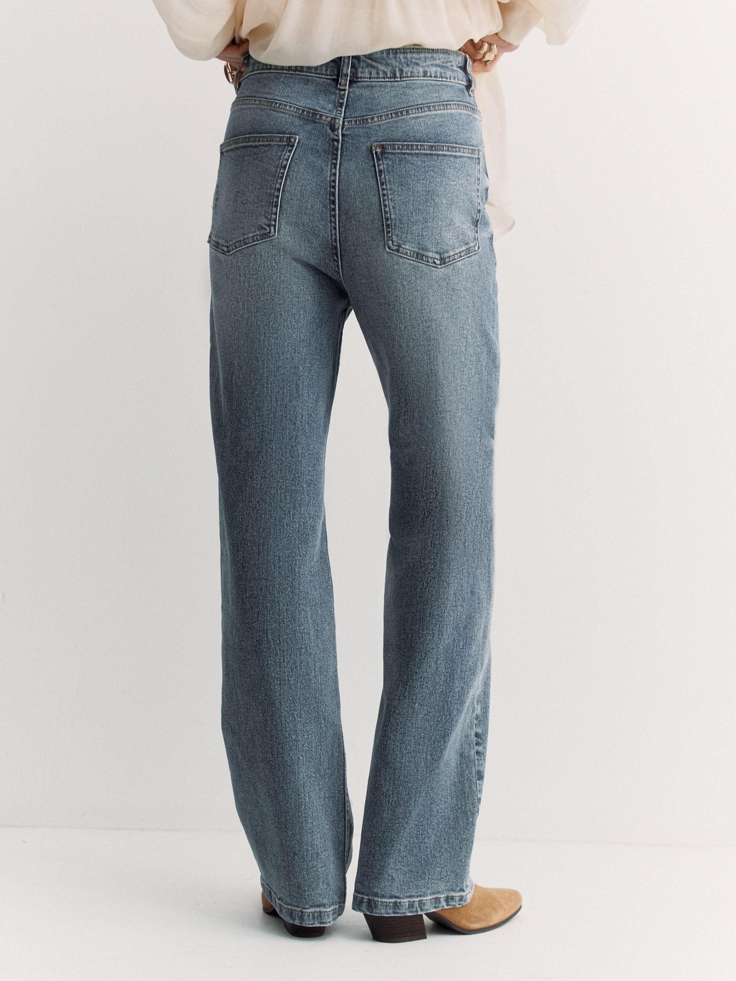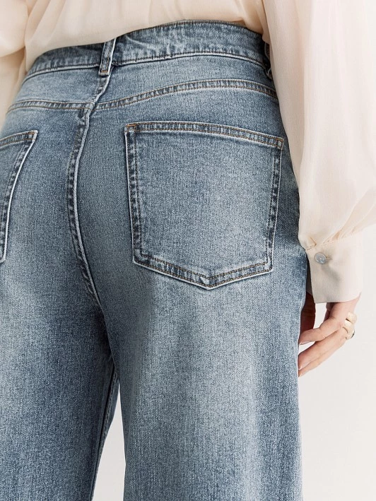 Выбрали для джинсов хлопковый деним с добавлением эластана, с легкой варкой и потертостями, что придает им индивидуальность.