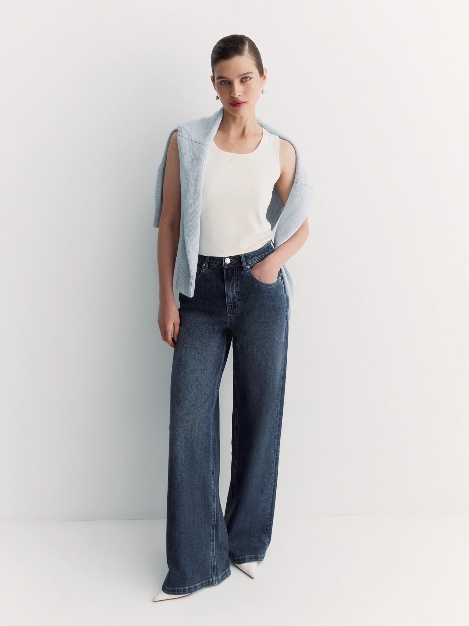 Универсальный синий цвет и лаконичный крой позволяют носить эти джинсы с чем угодно: можно сочетать с рубашкой для нестрогого офиса, с футболкой для встречи с друзьями или с джемпером для работы и отдыха.