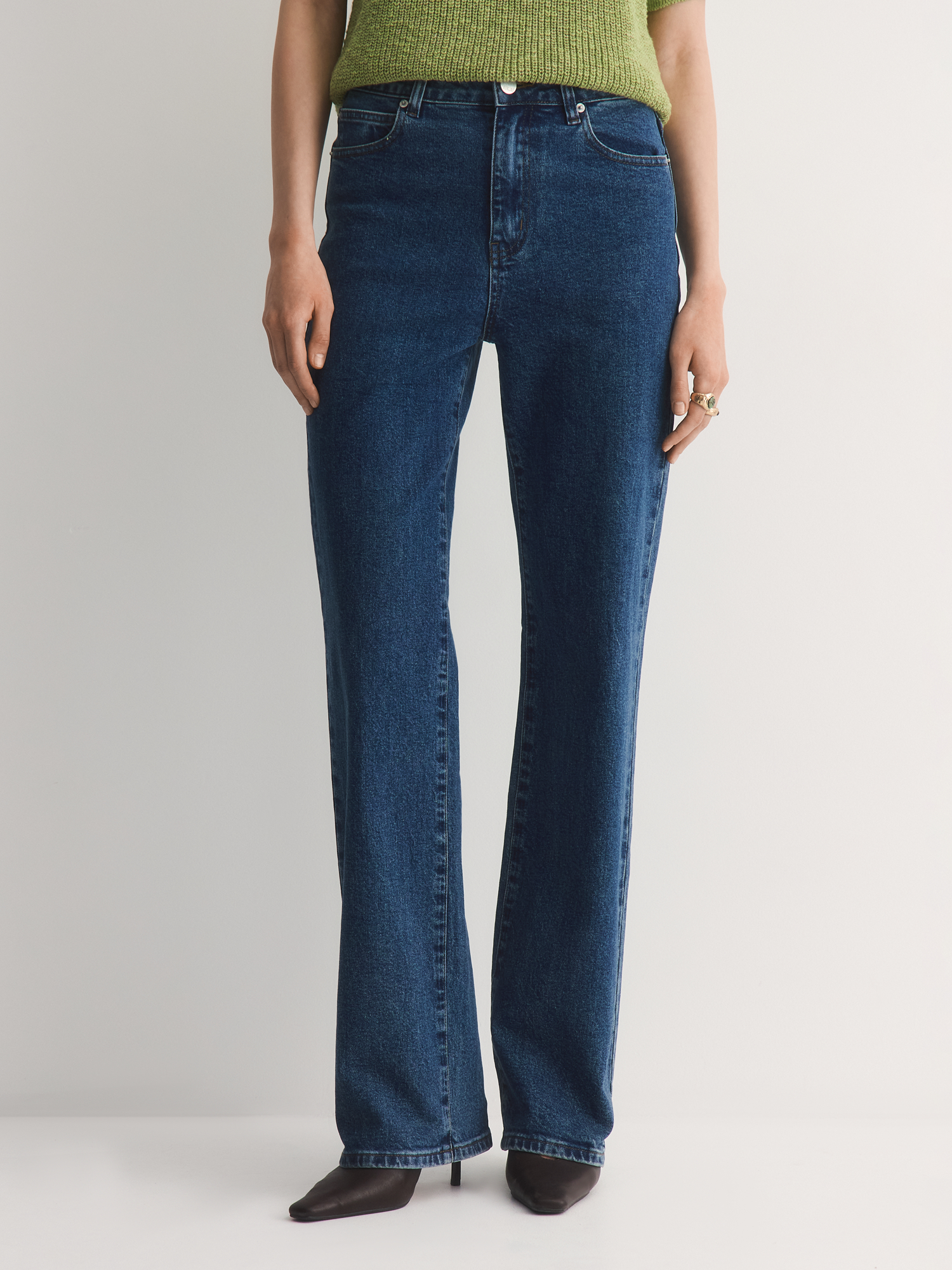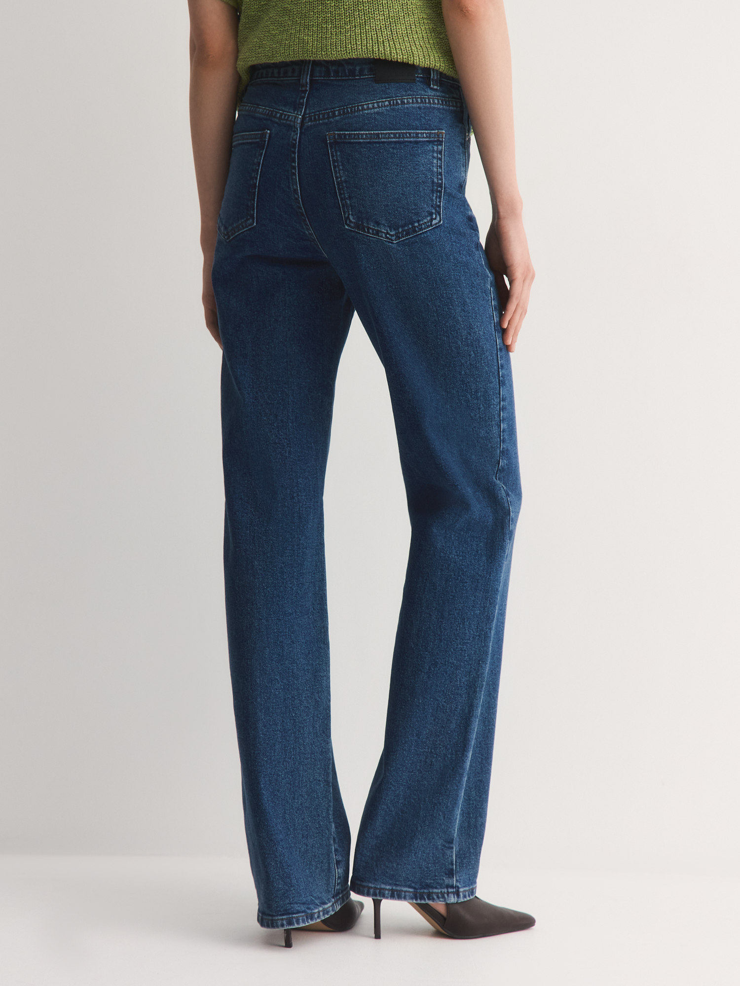 Уход за джинсами не вызывает затруднений: их рекомендуется стирать, вывернув наизнанку, с изделиями одинакового цвета, чтобы сохранить насыщенность оттенка и предотвратить выцветание.