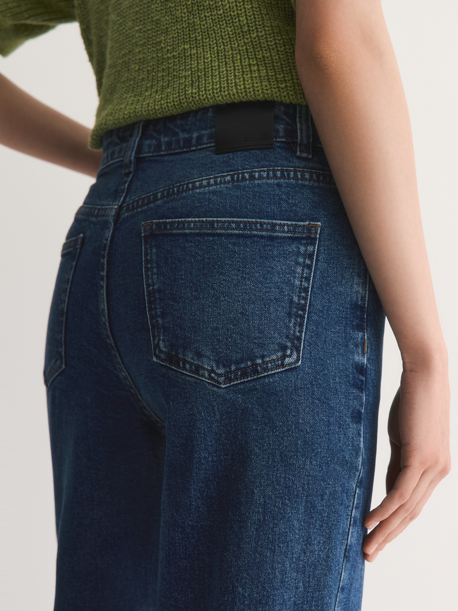 Для создания модели был выбран тактильно приятный хлопковый деним с небольшим добавлением эластана. Это сочетание материалов обеспечивает формоустойчивость, позволяя джинсам сохранять свою форму даже после многократной стирки. Эластан добавляет легкую эластичность, что делает изделие более комфортным в носке и позволяет свободно двигаться.