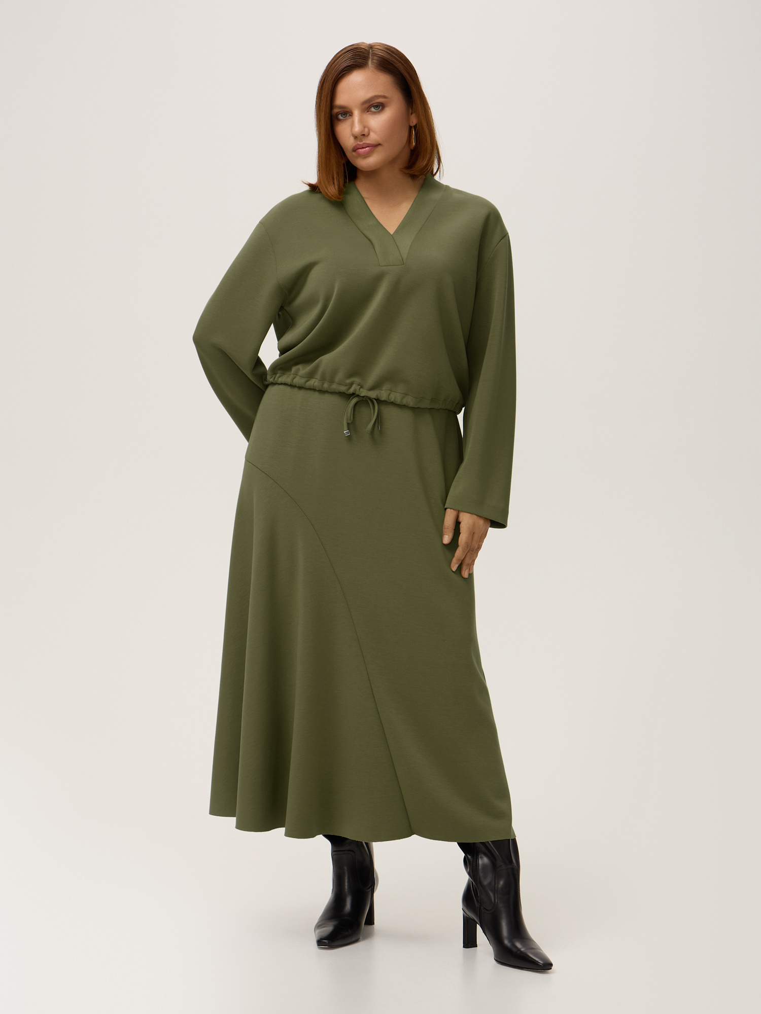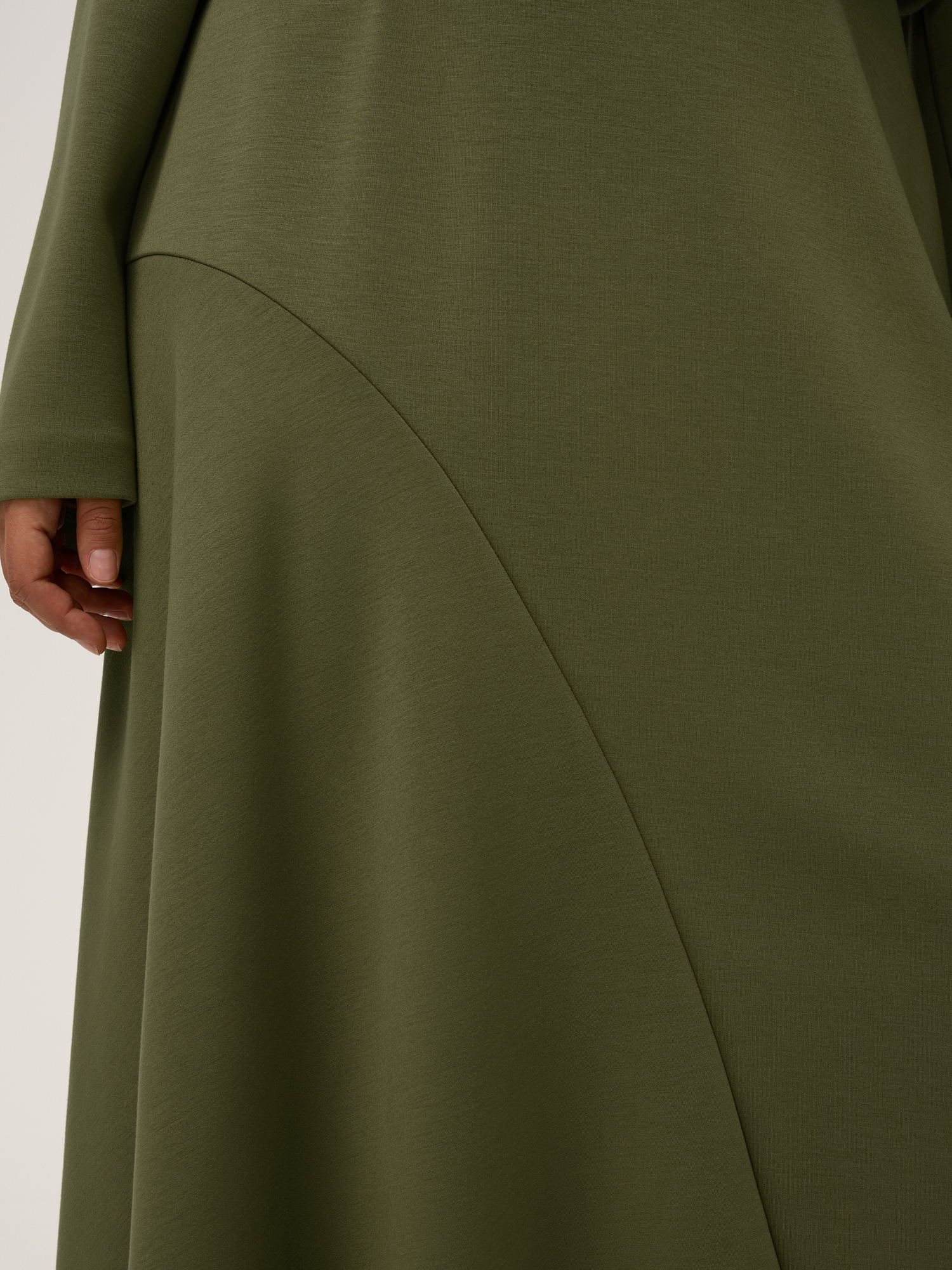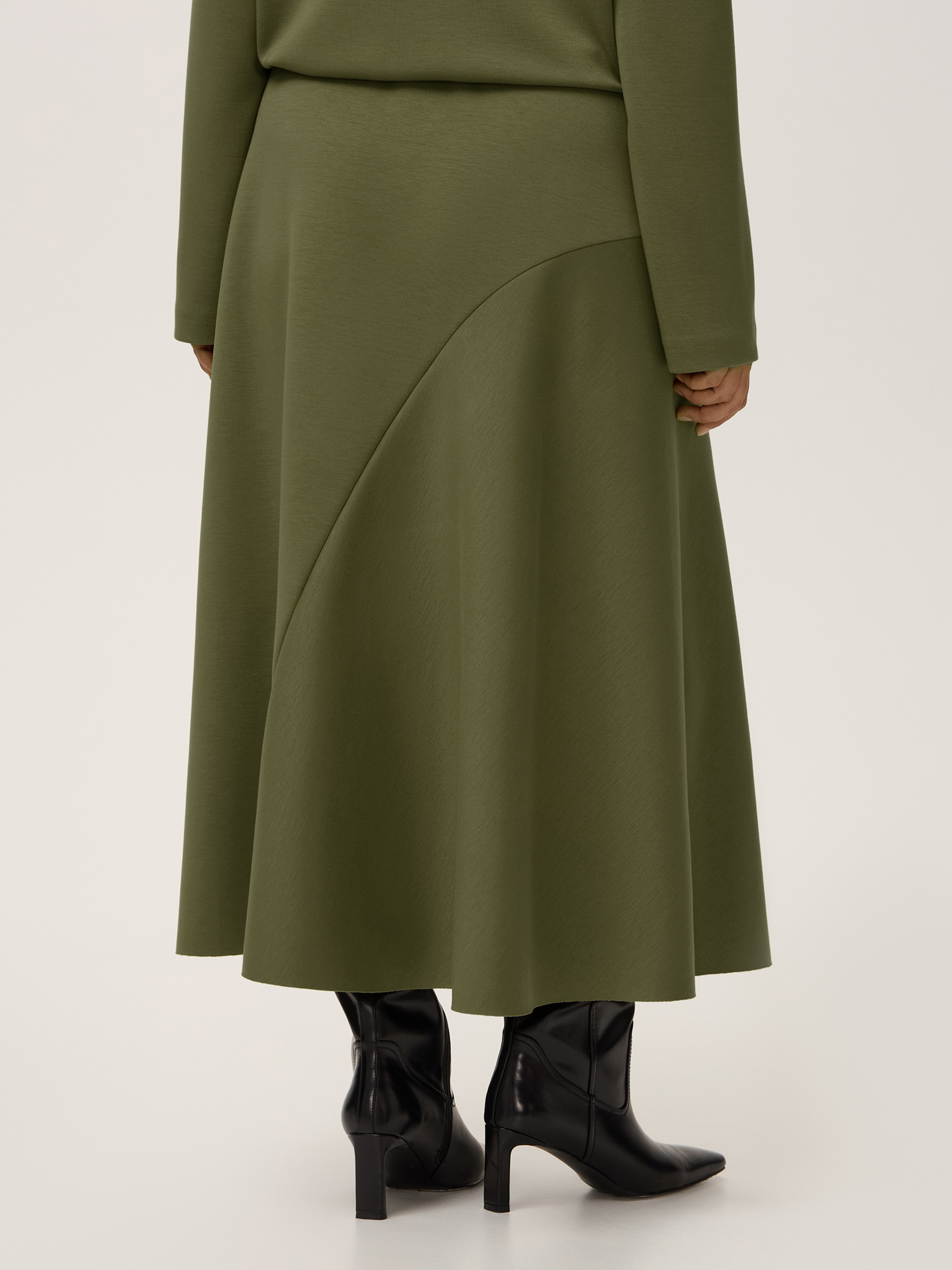 Юбка расклешенного силуэта станет настоящей жемчужиной гардероба, даря неповторимое ощущение легкости и женственности с первого взгляда. Ее волнующий фасон с игривым расклешением создает изящную динамику движения, превращая каждый шаг в грациозный танец, в то время как эластичная резинка по талии обеспечивает идеальную посадку, мягко облегая фигуру без малейшего дискомфорта. Оригинальная боковая вставка - та самая изюминка, которая выделяет эту модель среди множества других, добавляя образу визуальную глубину. Оригинальная деталь получилась такой легкой благодаря необработанному низу изделия, такой прием возможен при использовании современной технологии лазерной резки. Теплый природный тон оттенка "сфагнум" оживляет образ, делая его по-настоящему уникальным. Высокотехнологичный неопрен, состоящий из полиэстера, модала и спандекса, сочетает в себе лучшие качества волокон: прочность и износостойкость полиэстера, мягкость и дышащие свойства модала, а также идеальную эластичность, которую обеспечивает спандекс. Этот состав дарит коже невероятно приятные тактильные ощущения, сохраняя форму и практически не сминаясь. Юбка прекрасно сочетается с блузой BL1712K, представляя собой готовое стилевое решение, которое дополнит как повседневные, так и более нарядные образы.