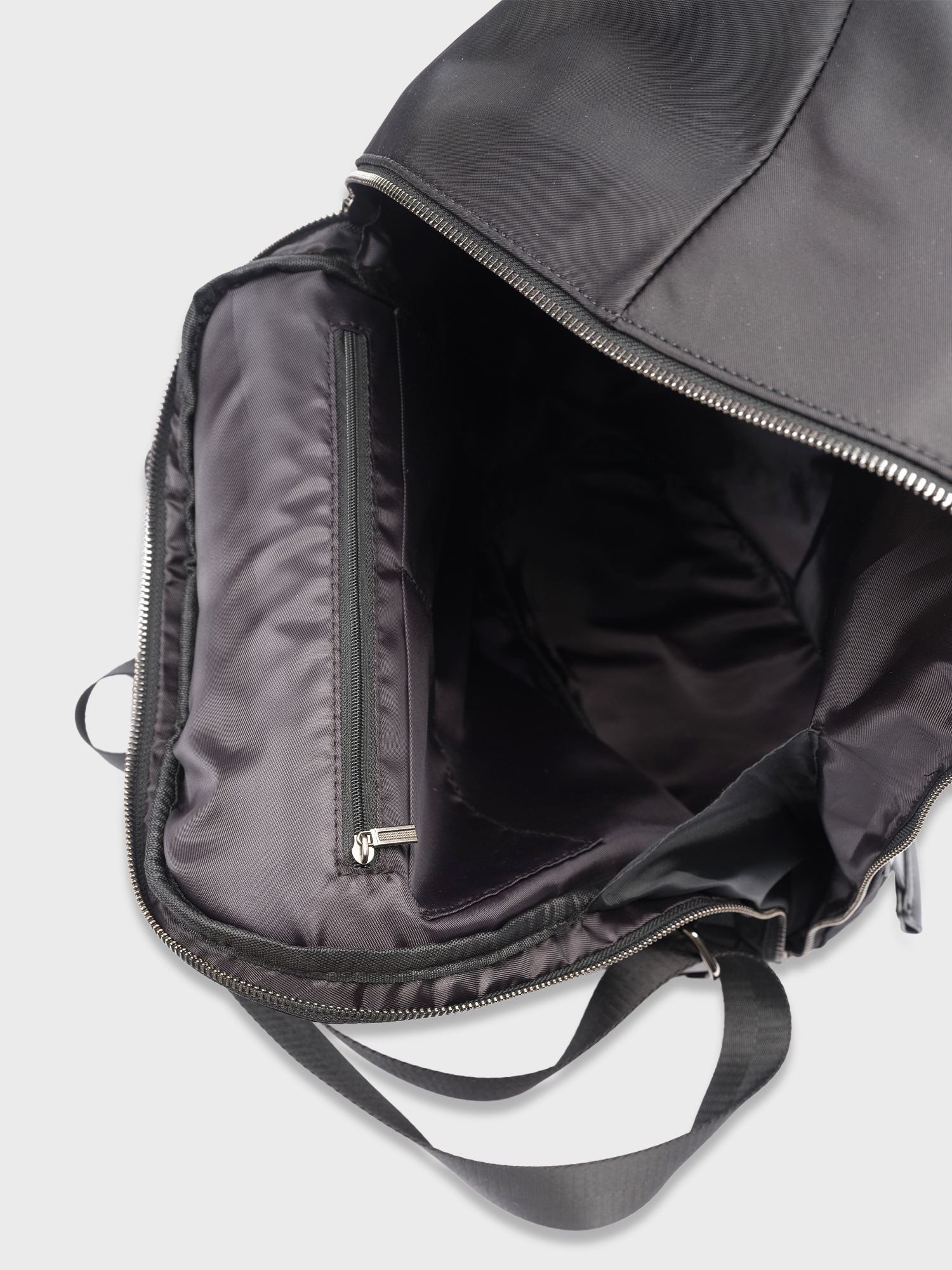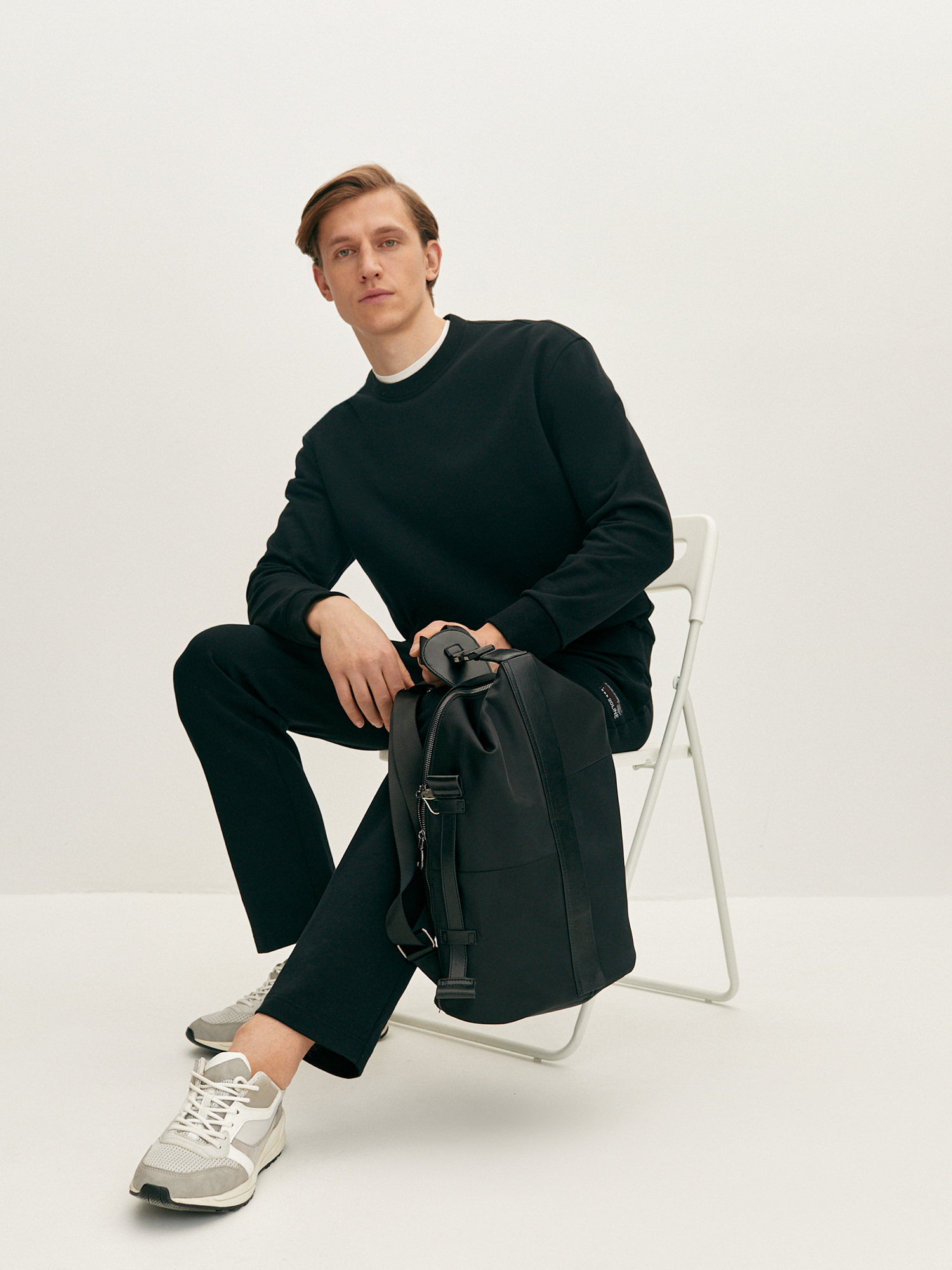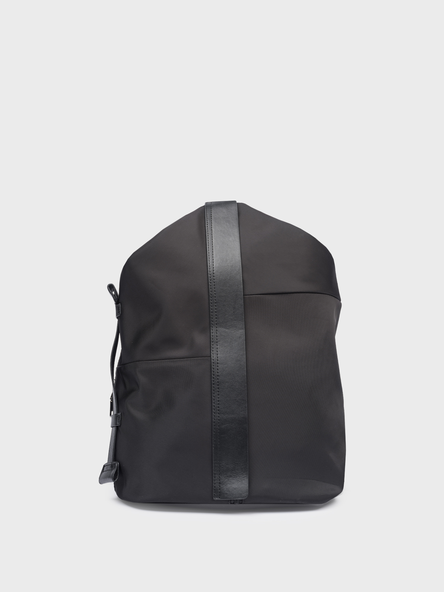 Рюкзак из прочного нейлона с отделкой искусственной кожей и сдержанной фурнитурой. Оснащен внешним большим карманом на молнии и дополнительными карманами для документов и аксессуаров внутри. На рюкзаке есть удобная боковая ручка, которая позволяет его носить в том числе как сумку. Роскошный повседневный аксессуар для современного мужчины. Размер рюкзака 30*16*40 см