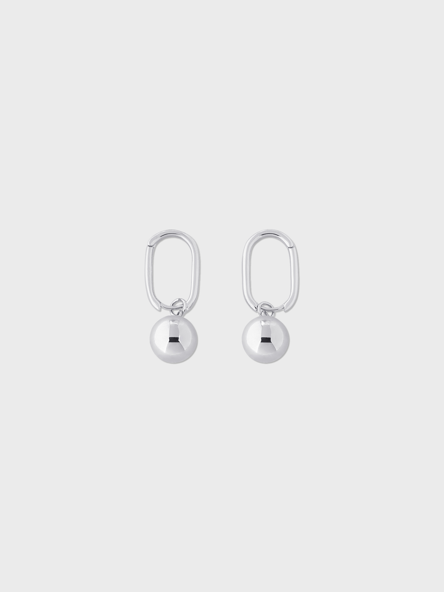 Серебристые динамичные серьги состоят из овального кольца и сферы. Серьги выполнены из надежной нержавеющей стали.