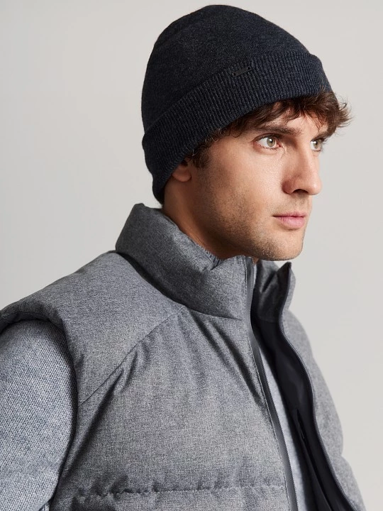 Стильная шапка с отворотом - незаменимый аксессуар для холодной погоды. Связанная эластичной рибаной, с фирменным металлическим украшением, она прекрасно держит форму и сохраняет тепло, в то время как комфортная посадка и самый необходимый минимум швов делают шапку по-настоящему незаменимой.