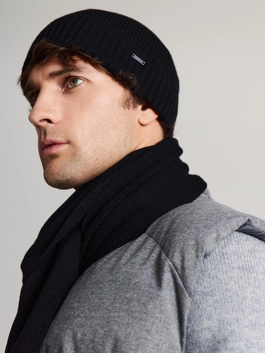 Шерсть мериноса очень прочная, с тонким волосом и невероятно теплая. Добавленный хлопок сохраняет терморегуляцию и улучшает износостойкость. Такой состав идеально сочетается с осенними и зимними куртками и пуховиками, а оптимальный размер и практичное переплетение нитей позволяют дополнять шарфом в универсальном черном разные образы — от спортивных до элегантных.