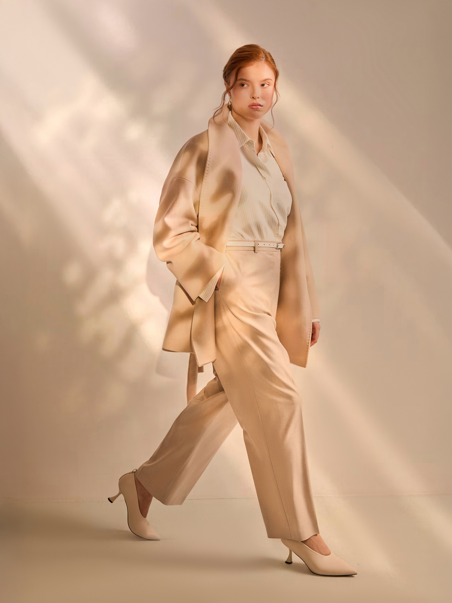Бренд: LalisЦвет: Светло-бежевыйСостав: Верх:Шерсть - 94%, Нейлон - 6%.Подкладка:Вискоза - 45%, Полиэстер - 55%Артикул: UD0014Размер на модели: 50Коллекция: ПРОБУЖДЕНИЕ