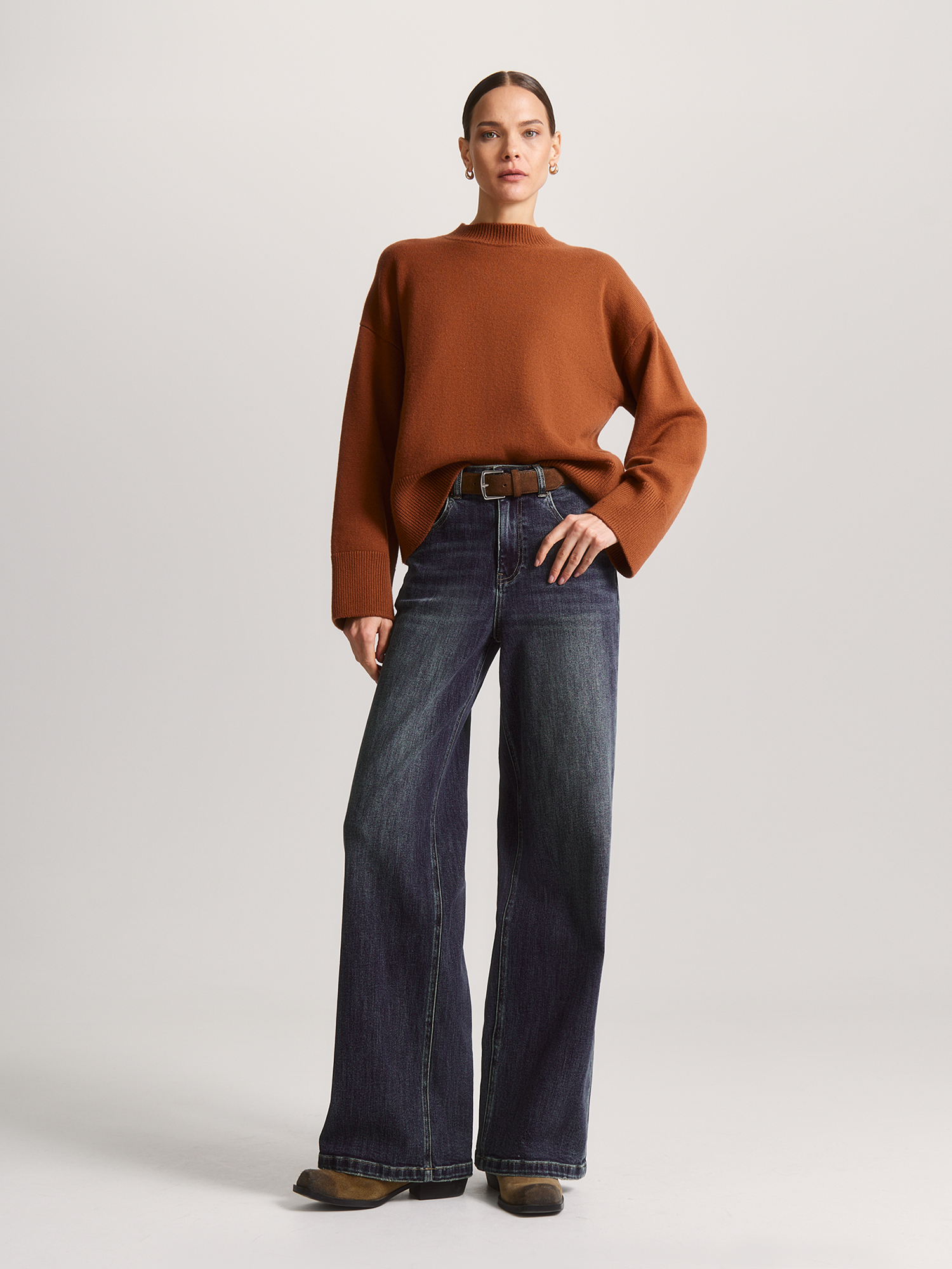 Классический темно-синий цвет и выверенный крой позволяют носить эти джинсы с чем угодно: можно сочетать с рубашкой для неформального офиса, с футболкой для встречи с друзьями или с джемпером для работы и отдыха. Такие джинсы отлично сочетаются с одеждой oversize.