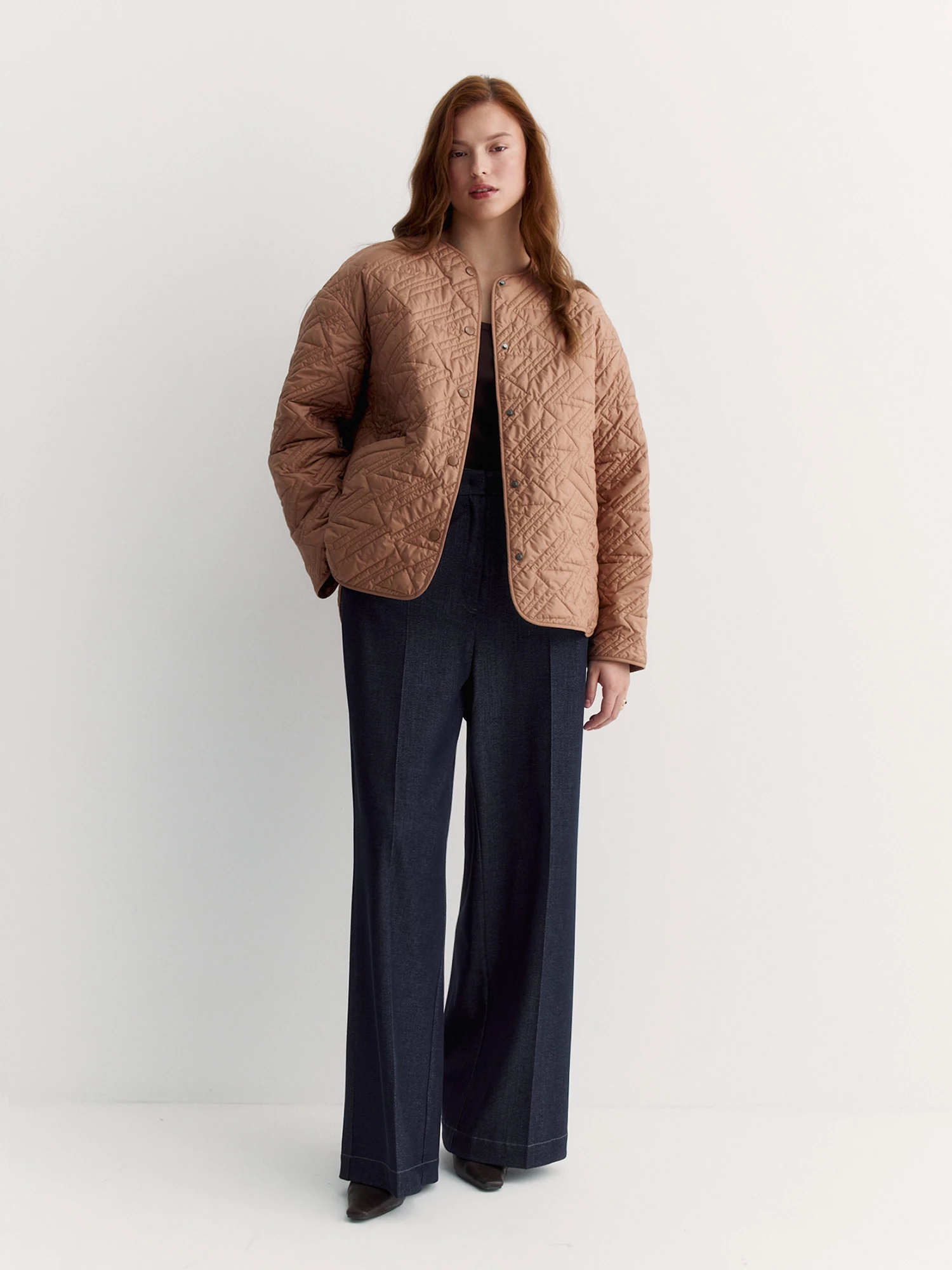 Легкая стеганая куртка на тонком синтепоне – идеальный вариант для прохладной погоды. Модель с аккуратным круглым вырезом и удобной застежкой на кнопки выглядит лаконично и современно.