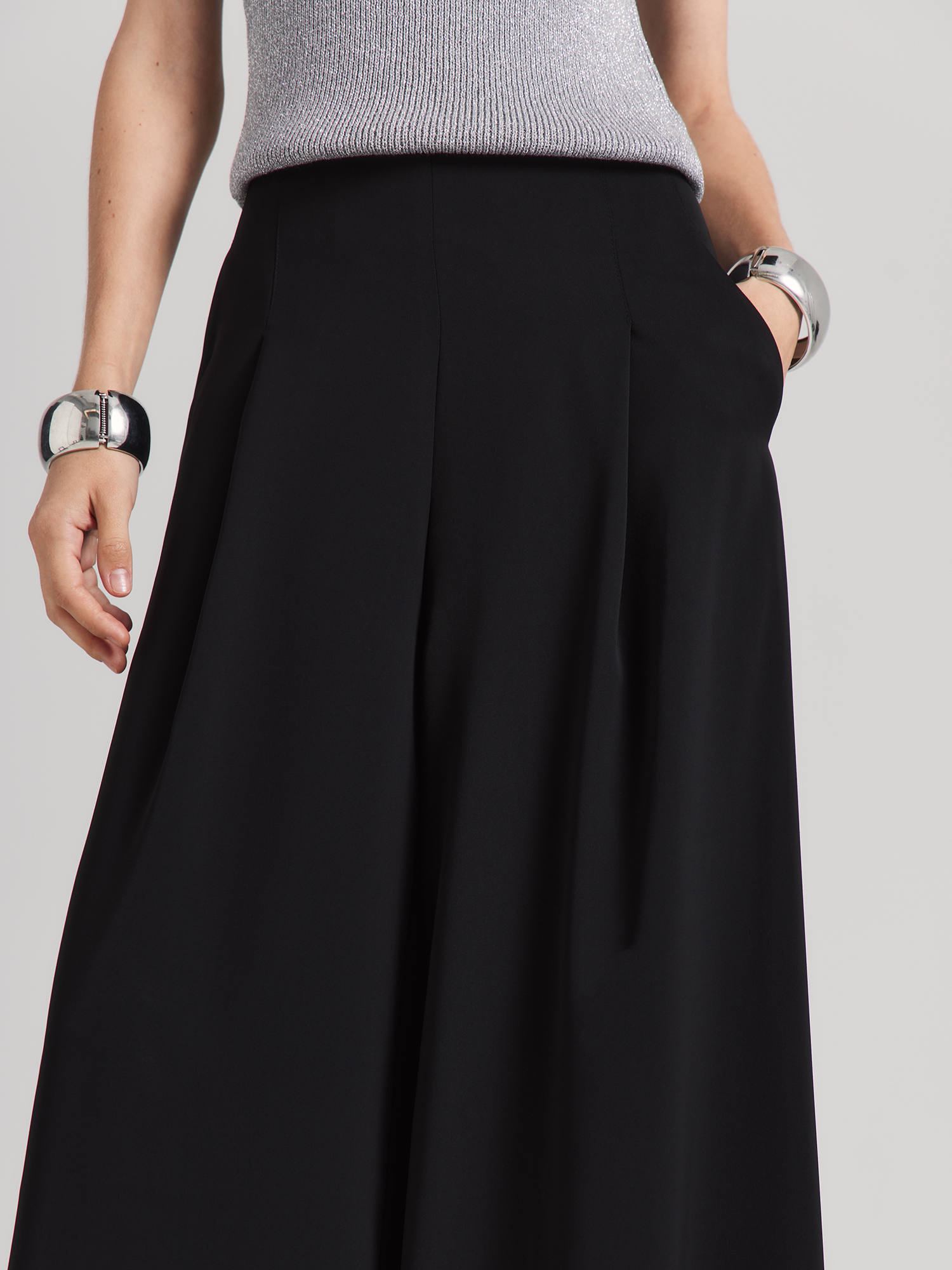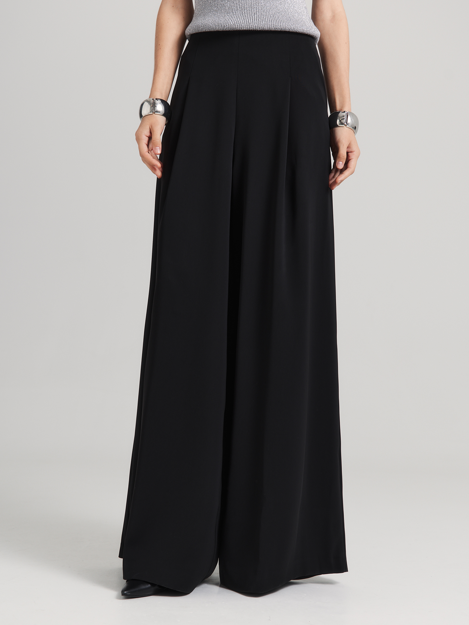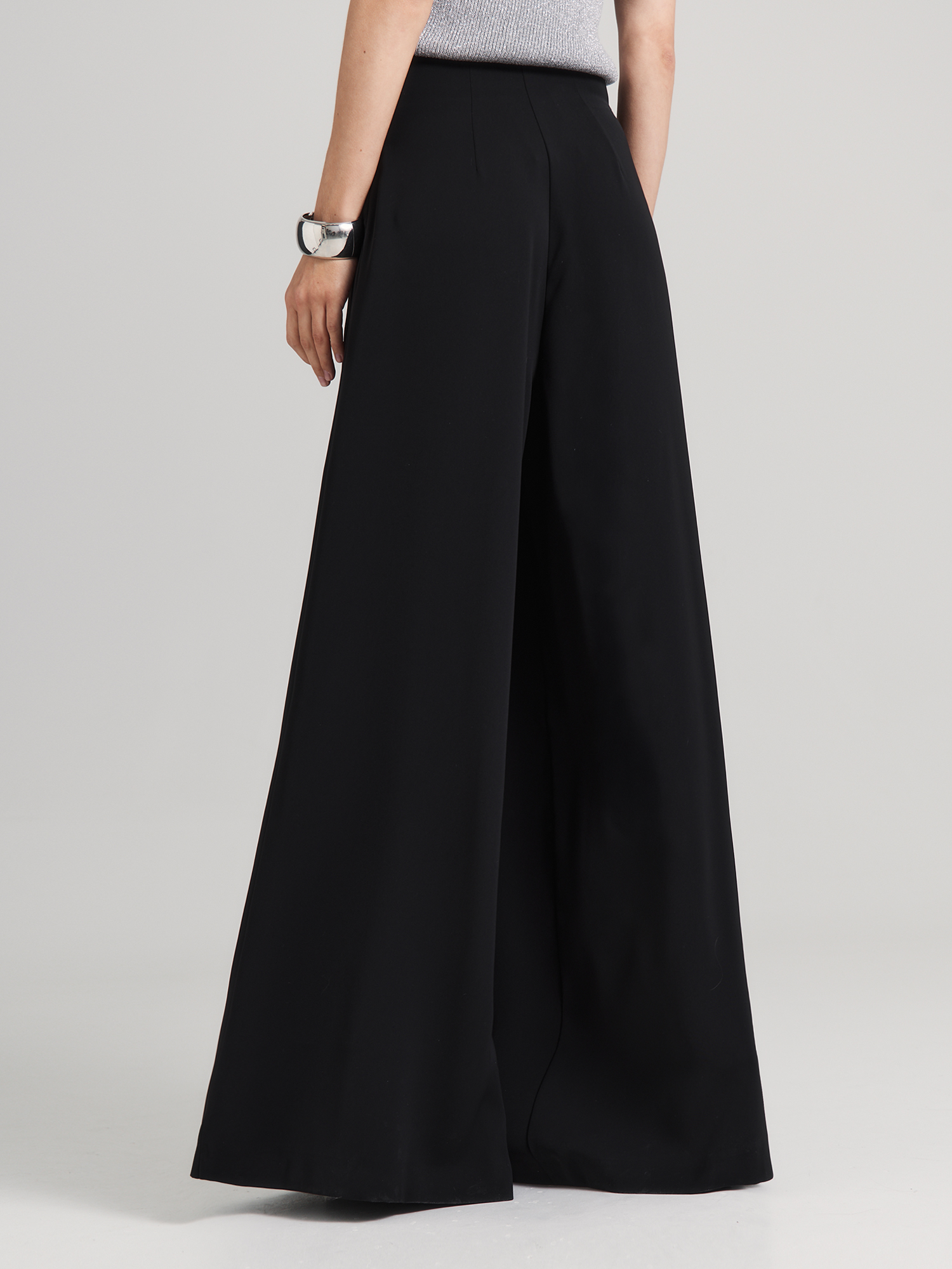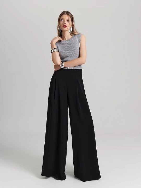 Брюки палаццо с застежкой сбоку на потайную молнию - универсальная модель. Летящие, широкие, с достаточно высокой посадкой, брюки невероятно стройнят, а благодаря особым складкам - красиво струятся при движении.