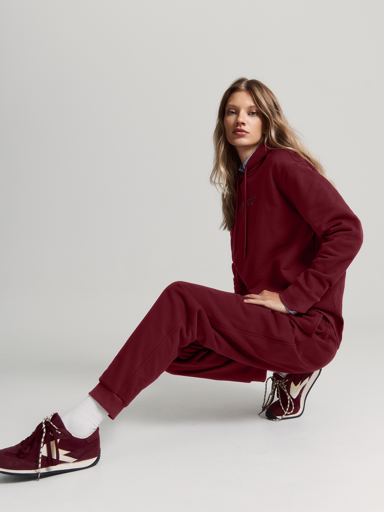 Цвет винограда сорта "зинфандель" сделает образы с таким худи главными акцентами холодного сезона. Свитшот можно носить со спортивными брюками TR0002K, джинсами или шортами для прогулок, занятий спортом или повседневных образов.