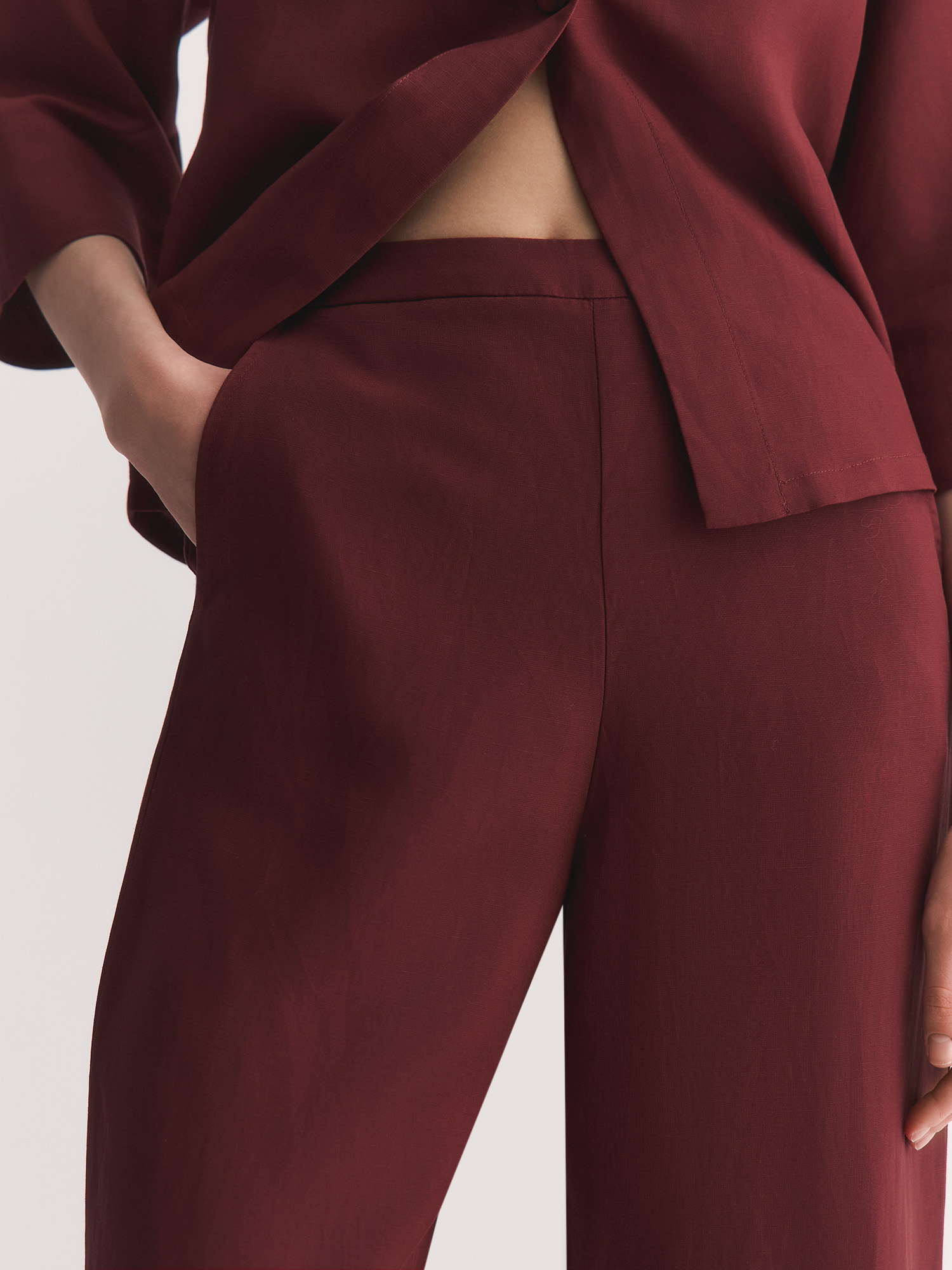 Бренд: ElisЦвет: БордовыйСостав: Лиоцелл - 70%, Лен - 30%Артикул: TR0737RРазмер на модели: 44Коллекция: РИМСКИЕ КАНИКУЛЫ