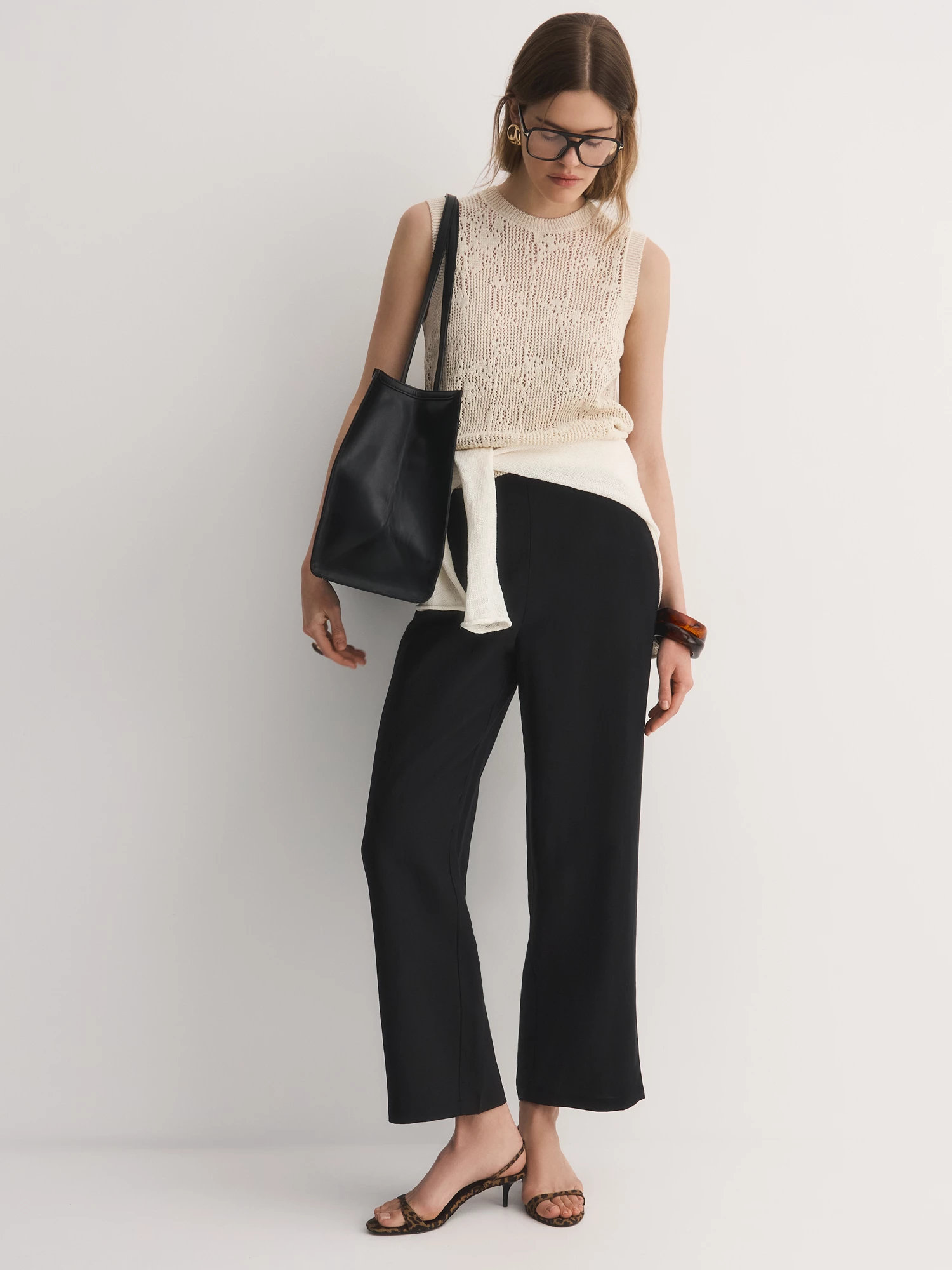 Брюки в уверенном черном цвете отлично сочетаются с жакетом в стиле кимоно JC0204R, с топом-бестселлером TP0058V5. Легкие, дышащие и непринужденные, они идеальны для летних прогулок, поездок за город или неформальных встреч.