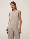 Гармония лаконичности формы и акцента на текстуре, созданной с помощью ленточной пряжи, воплощена в легендарном топе, созданном в стиле современного минимализма. Простой, но изысканный дизайн делает его универсальным для различных образов, сохраняя при этом стиль и комфорт. Выбрали для модели ленточную пряжи на основе льна и хлопка, с добавлением нейлона. Лен обеспечивает натуральность, прочность и воздухопроницаемость, а его терморегуляционные свойства делают изделие комфортным для носки даже при уверенной плюсовой температуре. Хлопок добавляет мягкость и комфорт, а нейлон повышает износостойкость и эластичность, обеспечивая идеальную посадку и свободу движений. Крой топа подчеркивает его минималистичный стиль: модель-бестселлер прямого кроя с круглой горловиной, без рукавов. Детали изделия выполнены кулирной гладью на японской плосковязальной машине Shima Seiki и соединены на кеттельном оборудовании с использованием ручного труда, что обеспечивает высокую точность и премиальное качество. Внимание к каждому процессу делает топ долговечным, подчеркивая его уникальность. Светло-бежевый оттенок, являющийся базовым и универсальным, станет прекрасным фоном для акцентных моделей и цветов актуального гардероба.