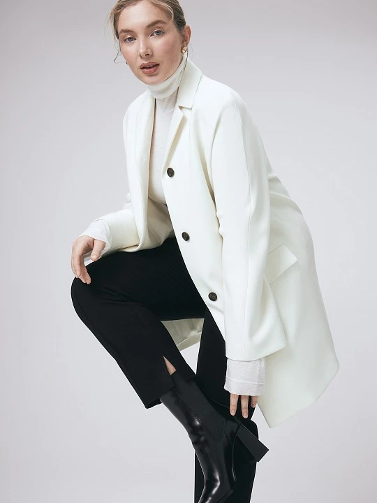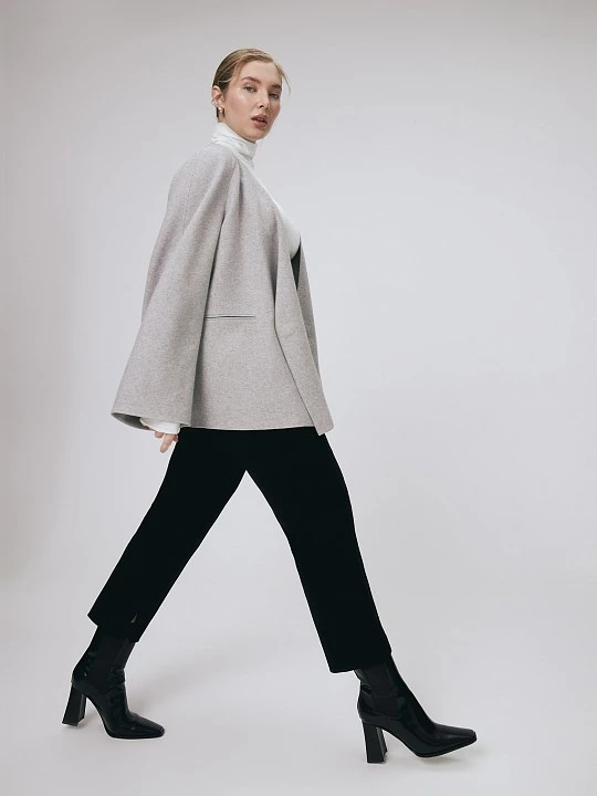 Гибрид полупальто и жакета, или труакар - оригинальная и комфортная альтернатива классической верхней одежде. Выполнили модель в меланжевом светло-сером, на полной подкладке. Лакконичный V-вырез, не обрамленный воротником, расширяет стилистические возможности труакара, а рукав-реглан комфортной ширины позволяет надевать под низ объемные джемпера и блузы. Создали изделие двубортным, со скрытой застежкой на специальные магнитные кнопки. Прорезные функциональные карманы "в рамку" прекрасно балансируют модель. Привлекает внимание украшение, предлагаемое в комплекте с труакаром - плавные линии в трехмерной броши завораживают и удерживают фокус внимания. Модель выполнена из качественной шерстяной ткани, хорошо держит тепло за счет плотности основного полотна и воздушной прослойки между ней и подкладочным полотном. Поливискозная подкладка тактильно приятна и долговечна. Меланжевые ткани всегда имеют базовый цвет, к которому подбираются нити других оттенков, близких к основному. В итоге получается интересный эффект, называемый оптикой меланжа. Такое полотно экологично, ведь при его производстве используется меньше воды и энергии, чем при традиционных методах окрашивания. Серый меланж в образах хорошо сочетается с моделями в базовых и классических оттенках.