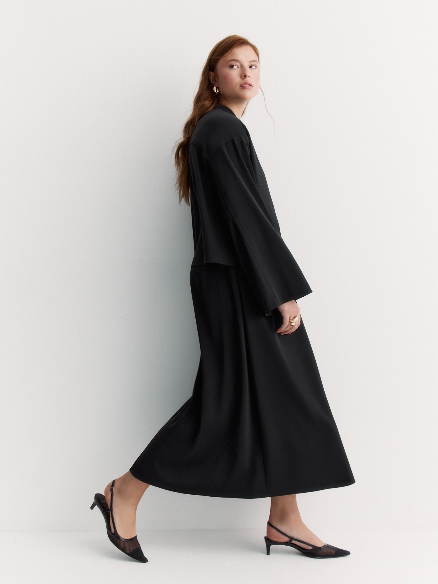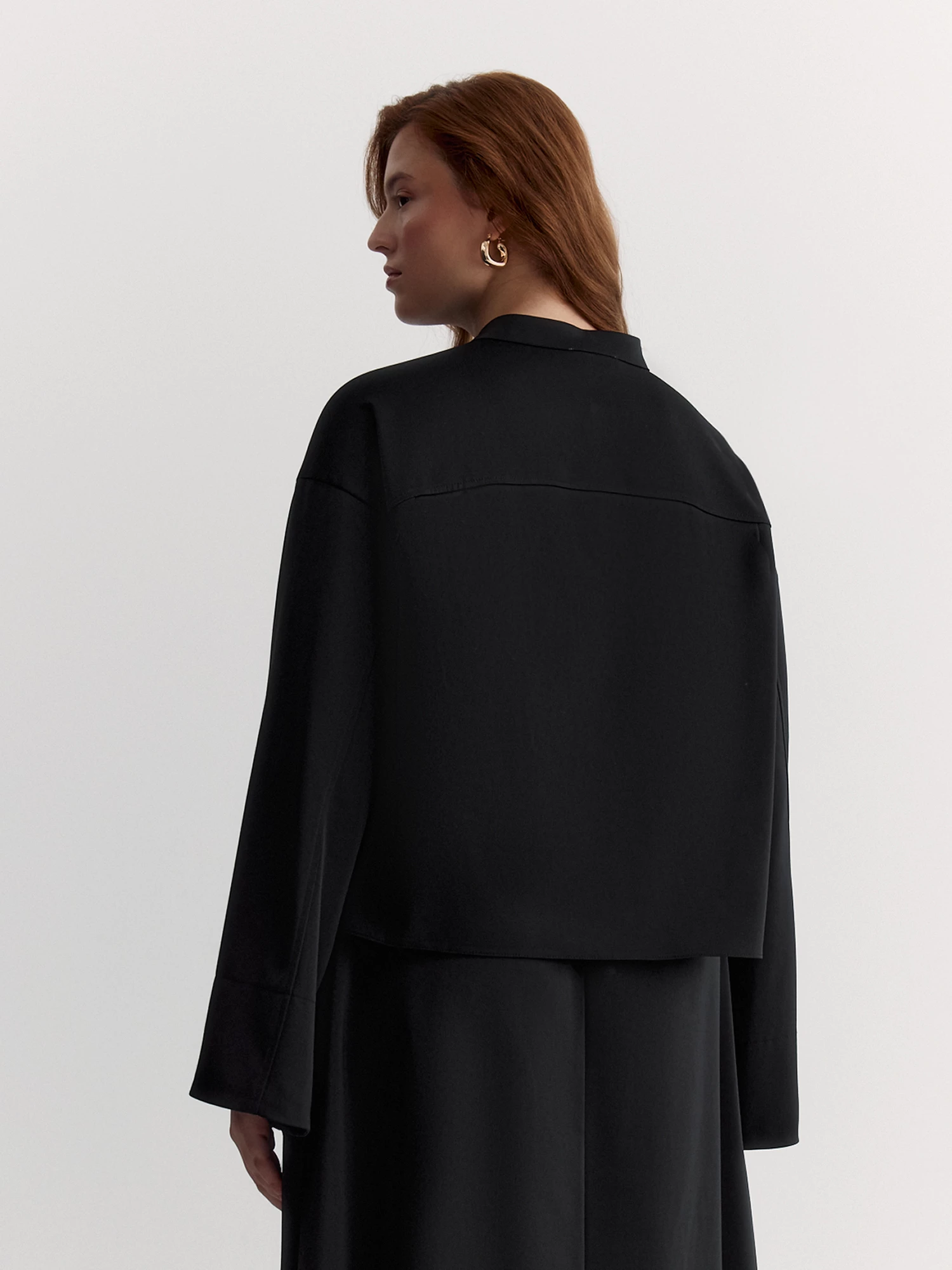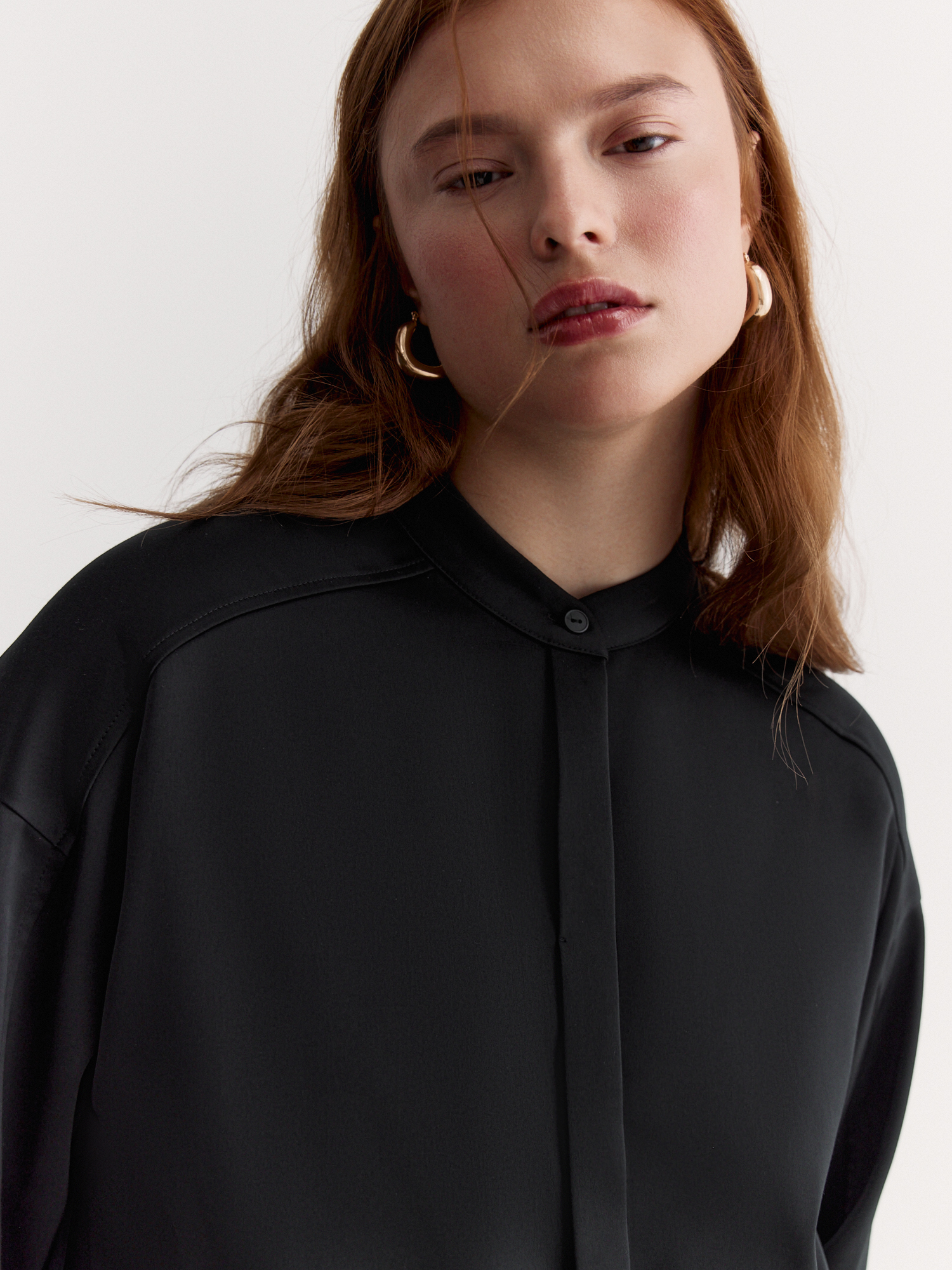 Блуза оригинального кроя – стильная, удобная и с идеальной посадкой. Сшита из высокотехнологичной ткани сабле с добавлением вискозы, которая приятна к телу и хорошо держит форму.