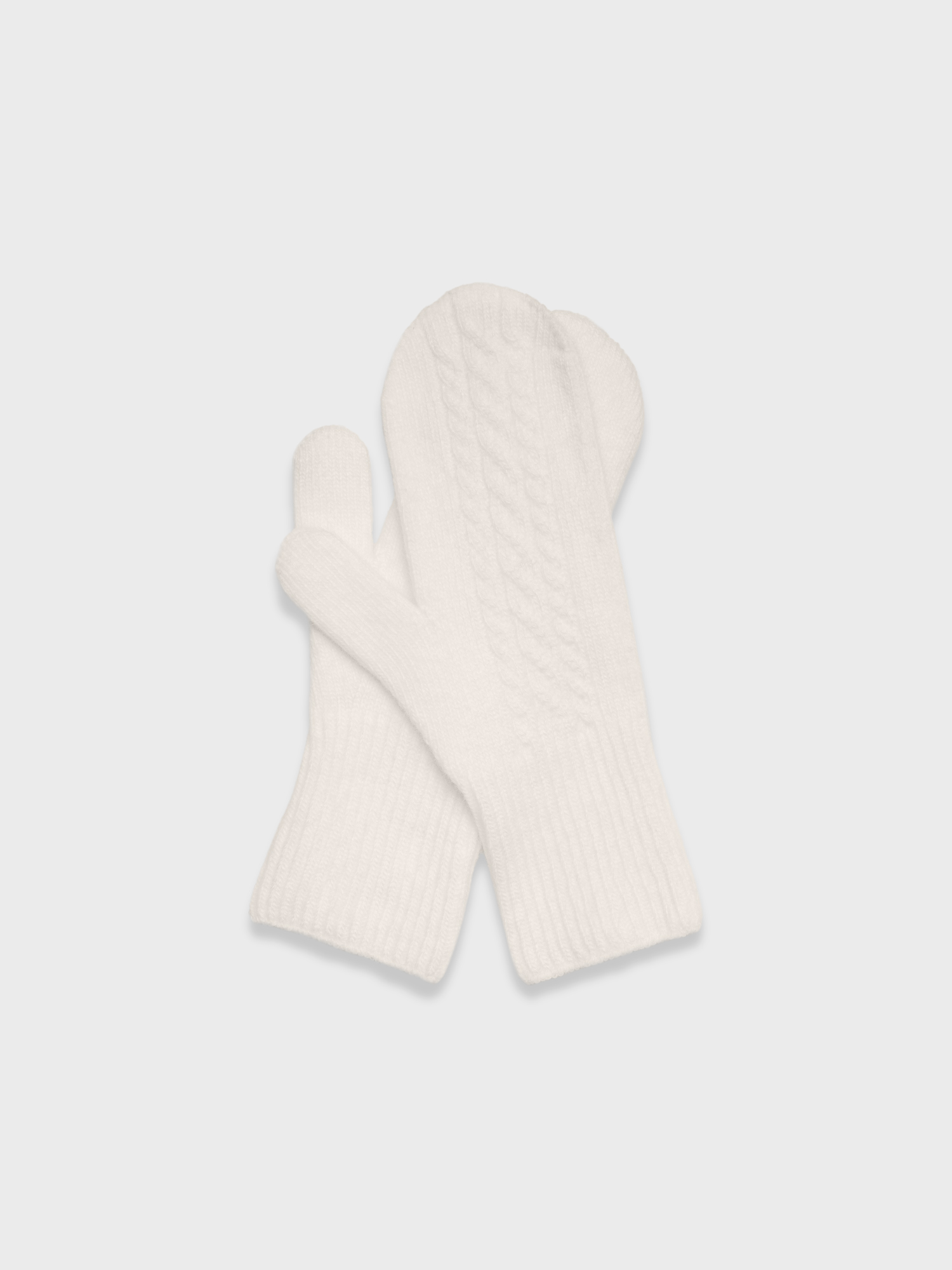 Выбрали для варежек пряжу из мягкой и теплой ангоры, согревающей овечьей шерсти, шелковистой вискозы и прочного нейлона. Такой состав идеально сочетается с осенними и зимними пальто и пуховиками, а функциональный дизайн позволяет дополнять белоснежными варежками самые разные образы — от спортивных до элегантных.