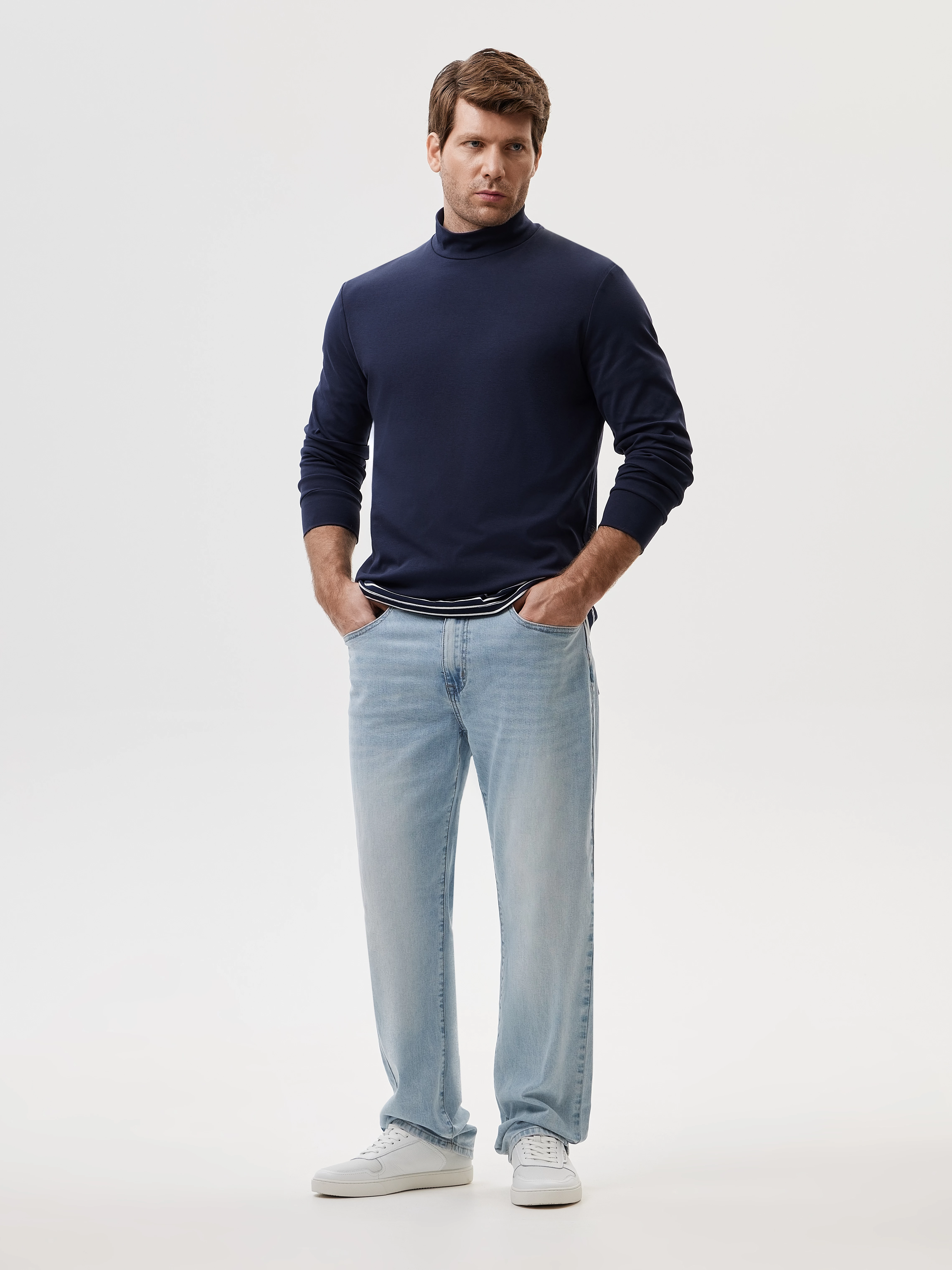 Водолазка изготовлена из воздухопроницаемой 100% хлопковой ткани и обеспечивает непревзойденный комфорт, а также приятные тактильные ощущения и поддержку оптимального микроклимата. Натуральный хлопок также отличается прочностью, износостойкостью и способностью сохранять цвет. Мягкий эластичный трикотаж обеспечивает свободу движений, а красивый глубокий синий цвет сочетается с различными оттенками одежды.