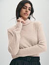 Тонкий базовый полуприлегающий джемпер с двойной высокой стойкой и длинными рукавами. Выбрали для модели фактурный вискозный трикотаж в меланжевом бежевом, при производстве такой ткани использованы нити разных оттенков основного цвета. Стильный светло-бежевый гольф можно носить как отдельно, так и под пиджак, в офис, в школу, на прогулку.
