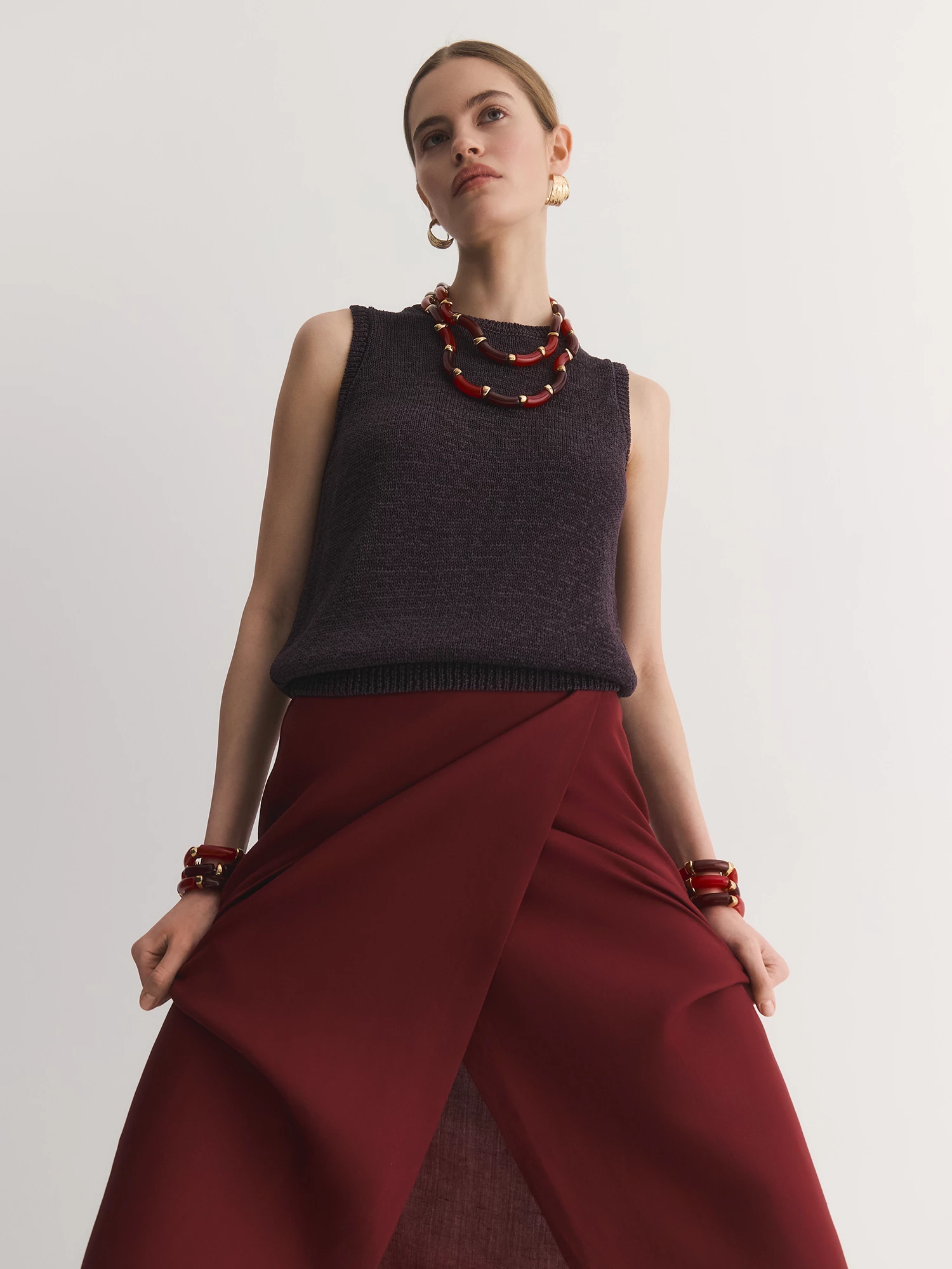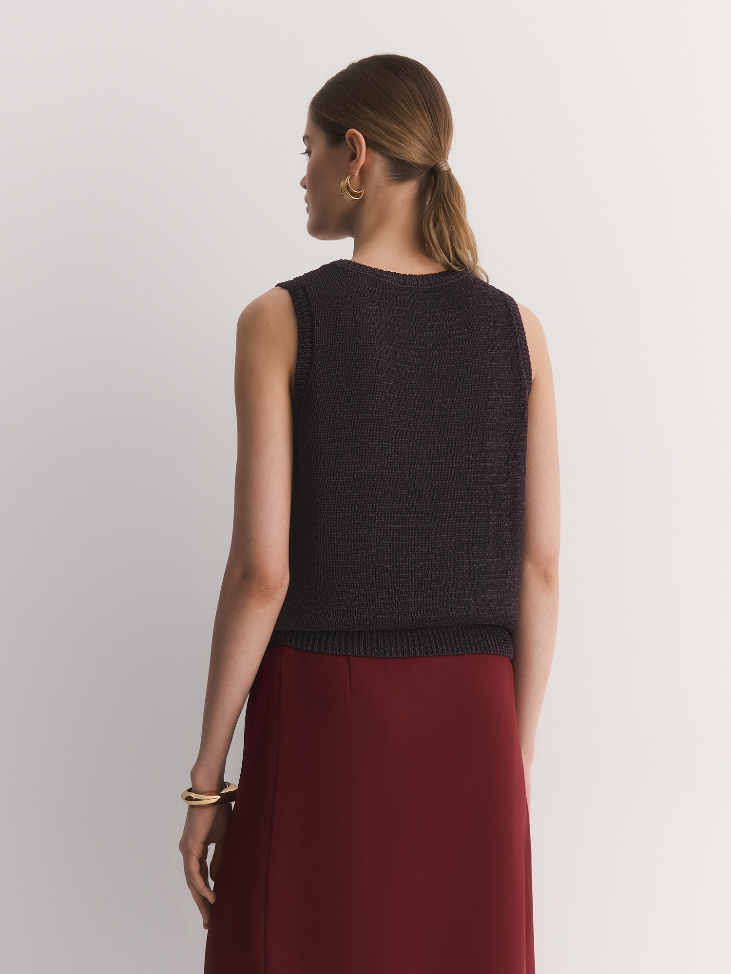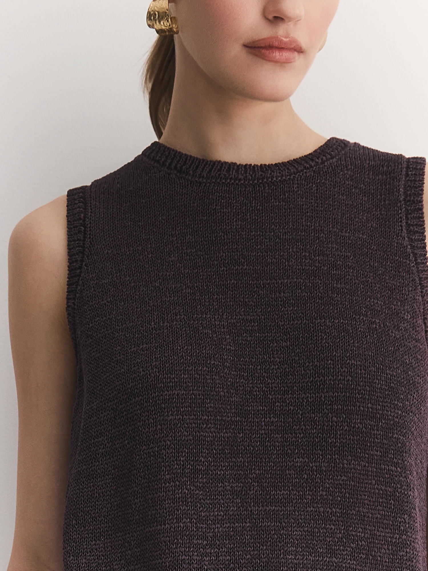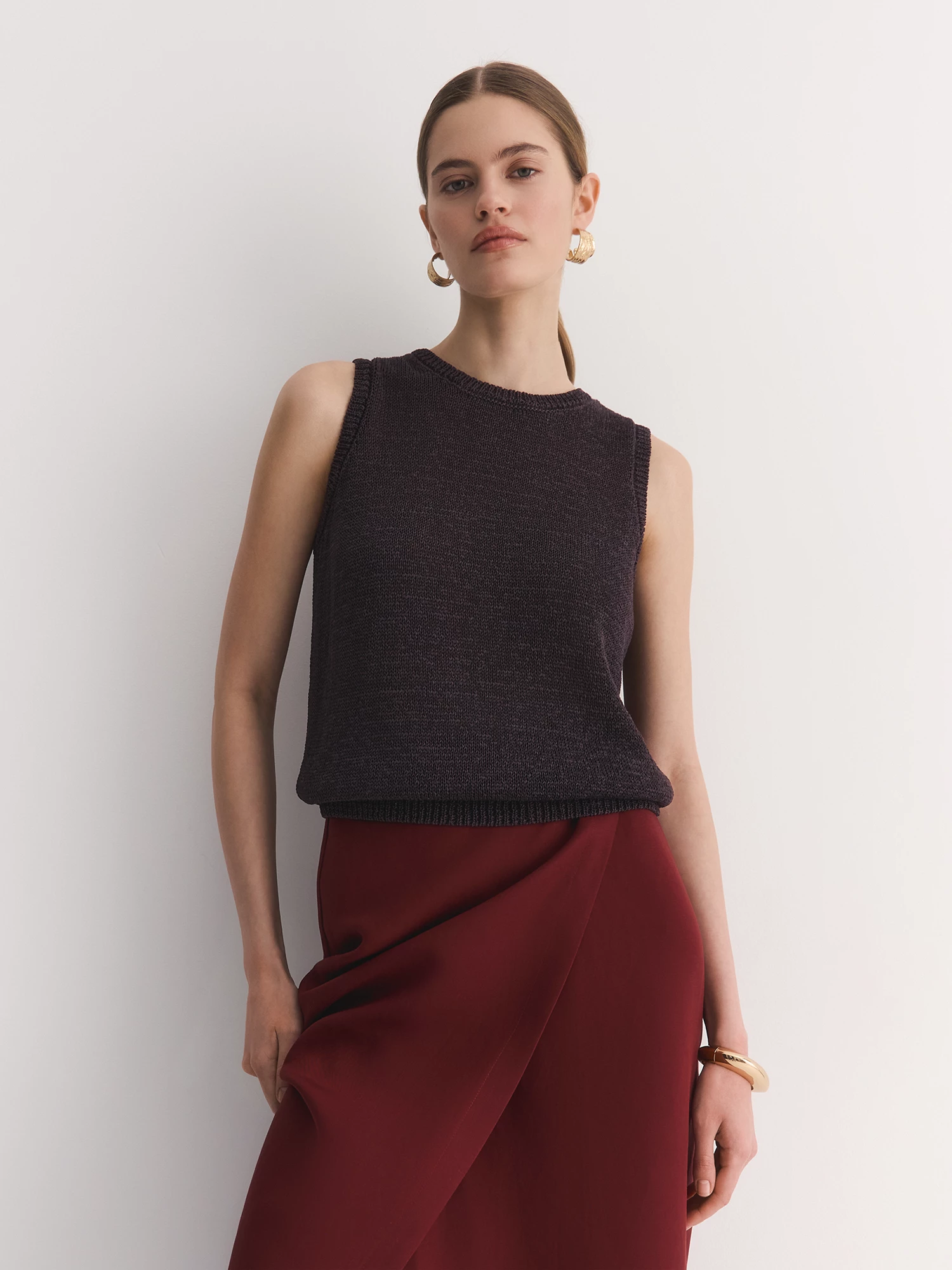 Прямой крой и круглая горловина подчеркивают лаконичность модели, а отсутствие рукавов делает ее универсальной для любого сезона. Коричневый оттенок легко сочетается с любыми цветами, будь то классические джинсы, юбки или яркие акцентные вещи.