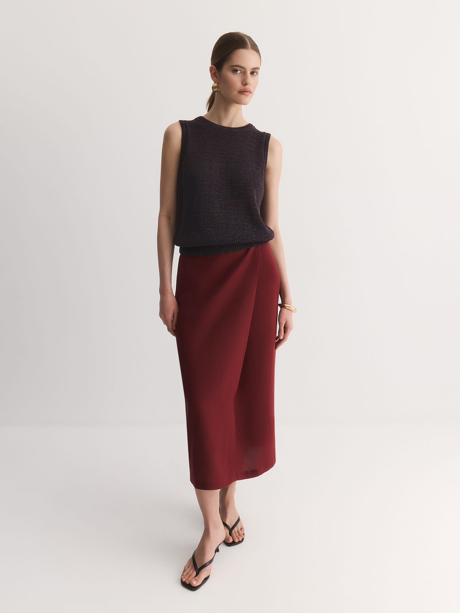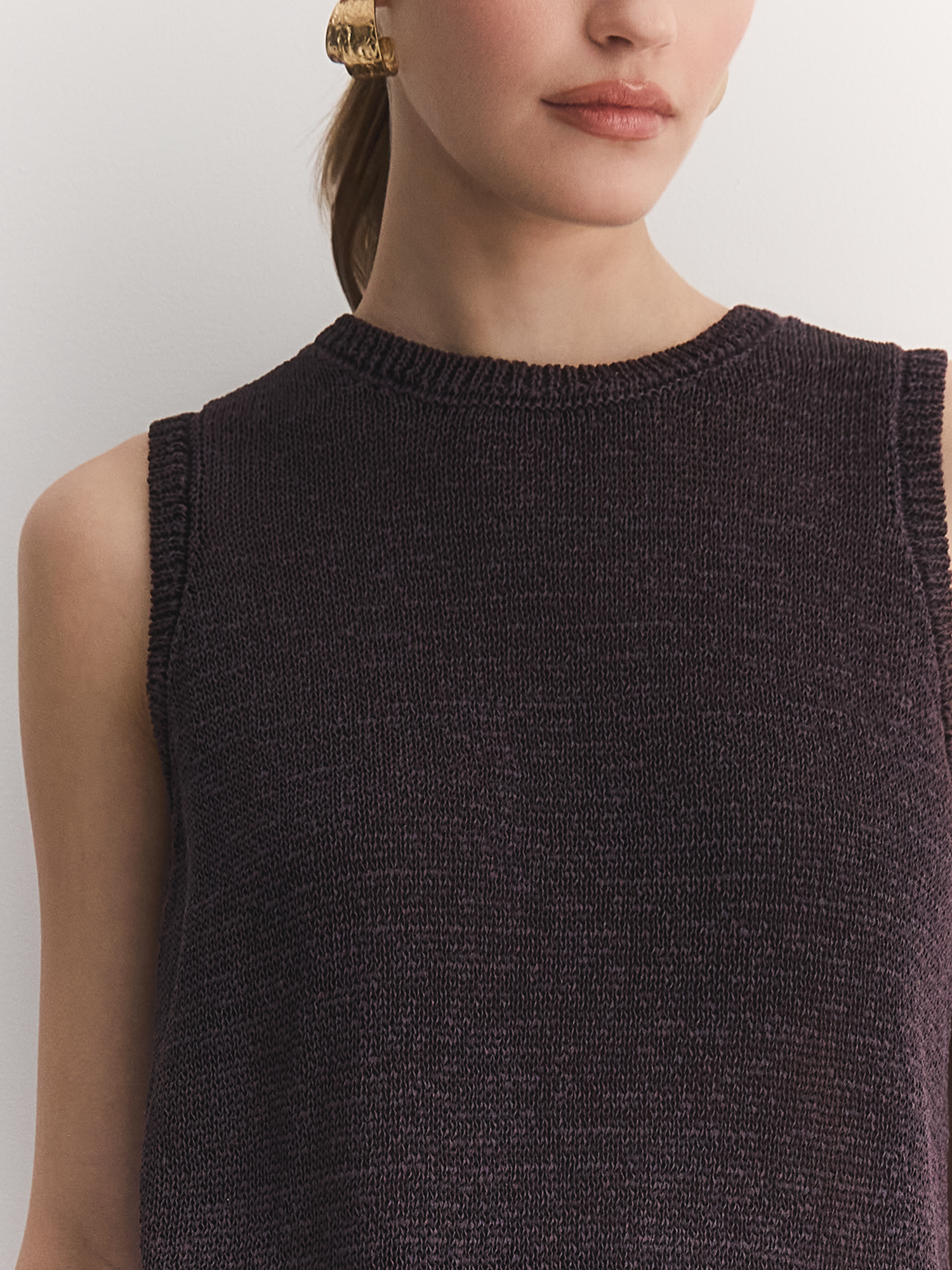 Лаконичный топ из ленточной пряжи с премиальным составом — идеальное сочетание простоты и стиля. Созданный в духе современного минимализма, он станет базовой, но выразительной вещью в Вашем гардеробе.