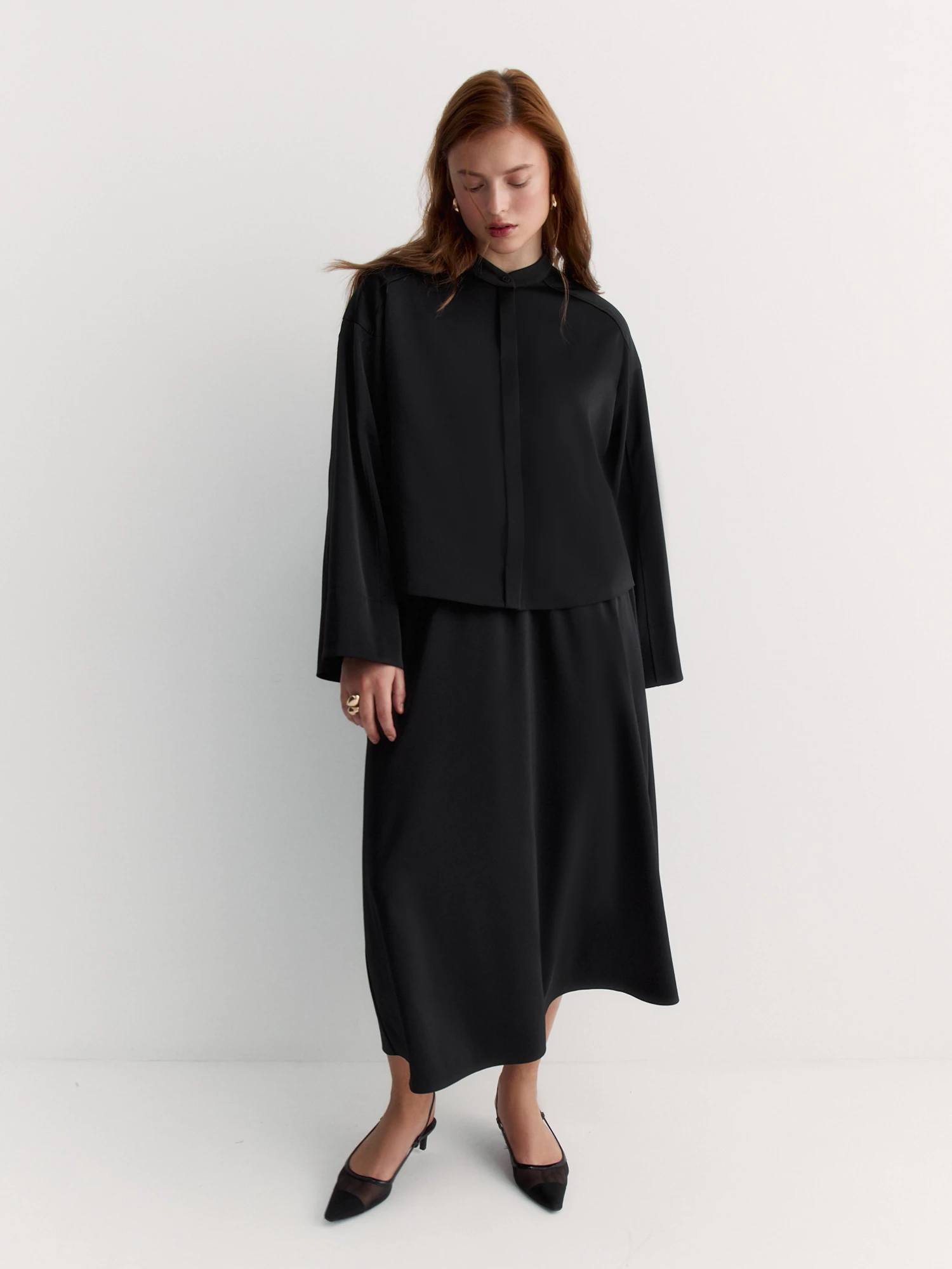 Юбка А-силуэта из атласной ткани – женственная, удобная и лёгкая. Сшита из высокотехнологичной ткани сабле с добавлением вискозы, которая приятна к телу и хорошо держит форму.