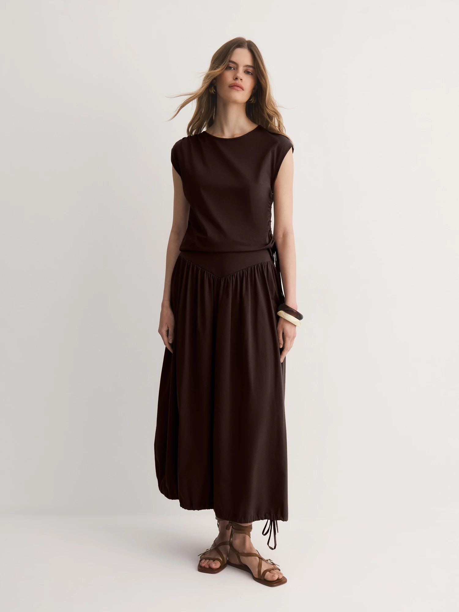 Бренд: ElisЦвет: КоричневыйСостав: Хлопок - 100%Артикул: SK0668KRРазмер на модели: 44Коллекция: РИМСКИЕ КАНИКУЛЫ