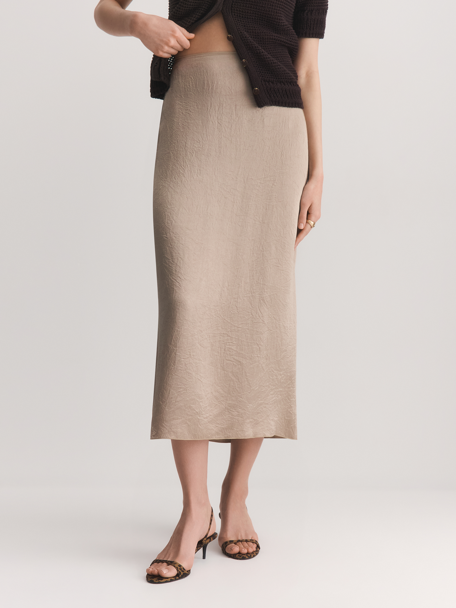 Бренд: ElisЦвет: Бежево-серыйСостав: Ацетат - 100%Рост: 177Артикул: SK0523Параметры модели: 85 - 61 - 89Размер на модели: 44Коллекция: A LINE OF BEAUTY