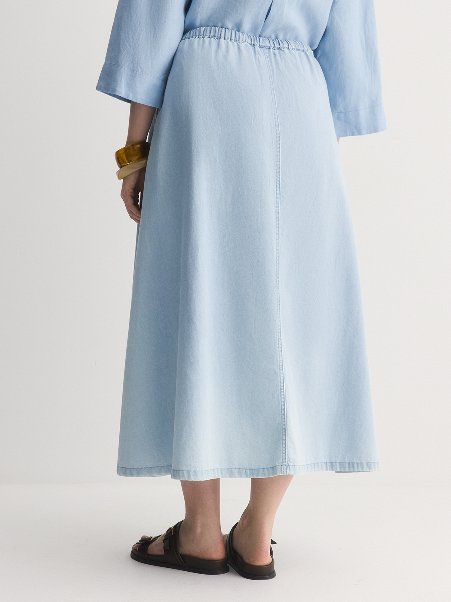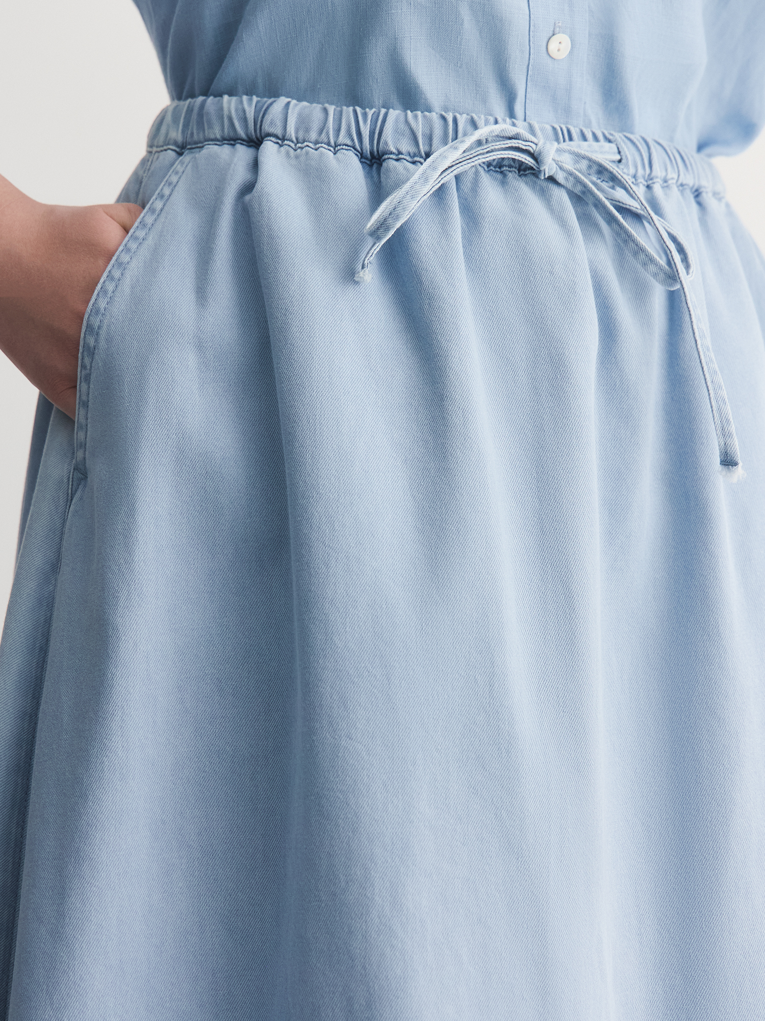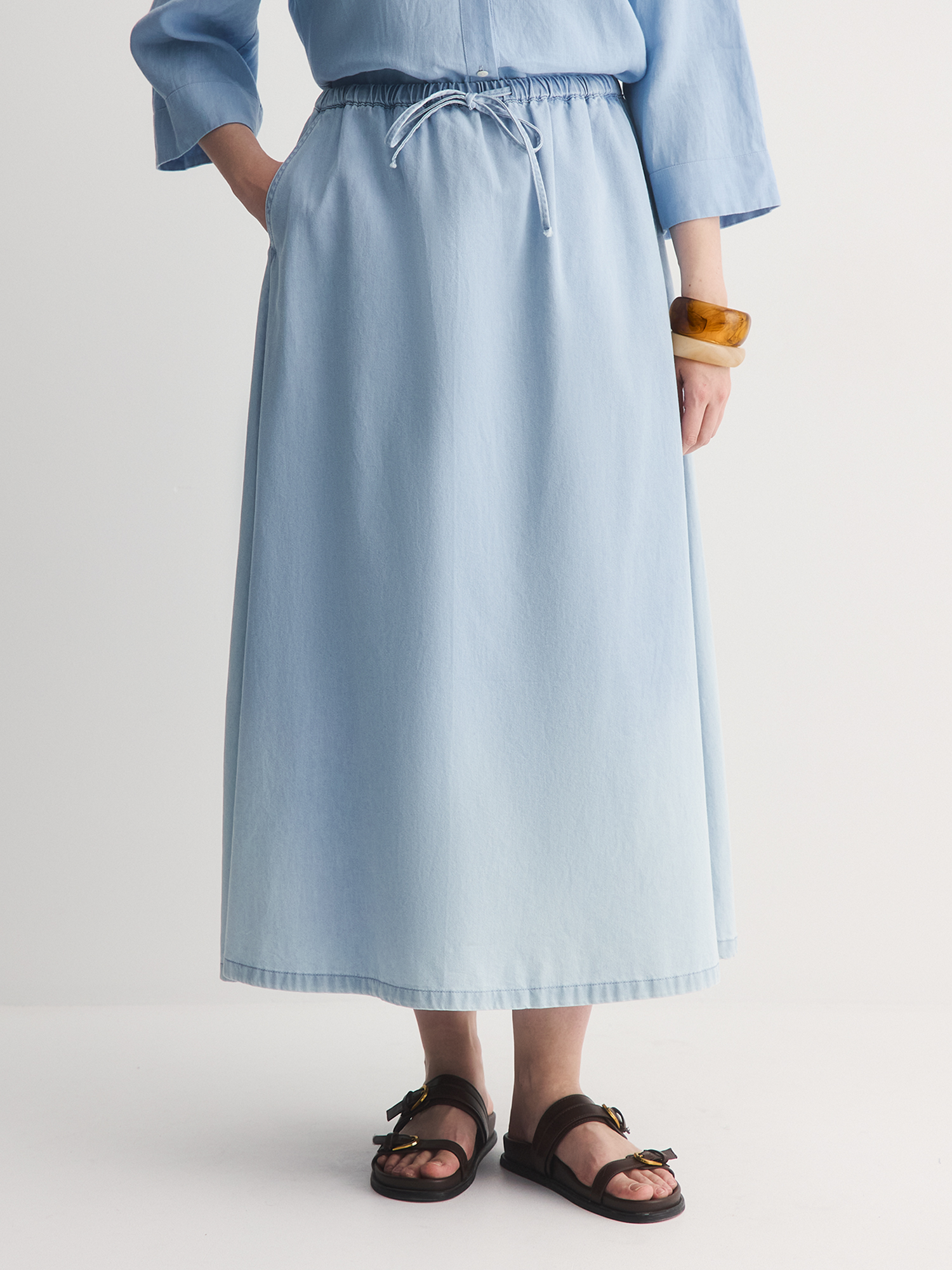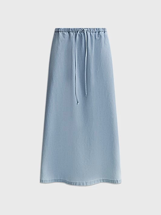 Тонкая джинсовая юбка - идеальный вариант для жарких дней. Сшитая из 100% хлопкового тонкого денима, она прекрасно пропускает воздух, даря ощущение прохлады.