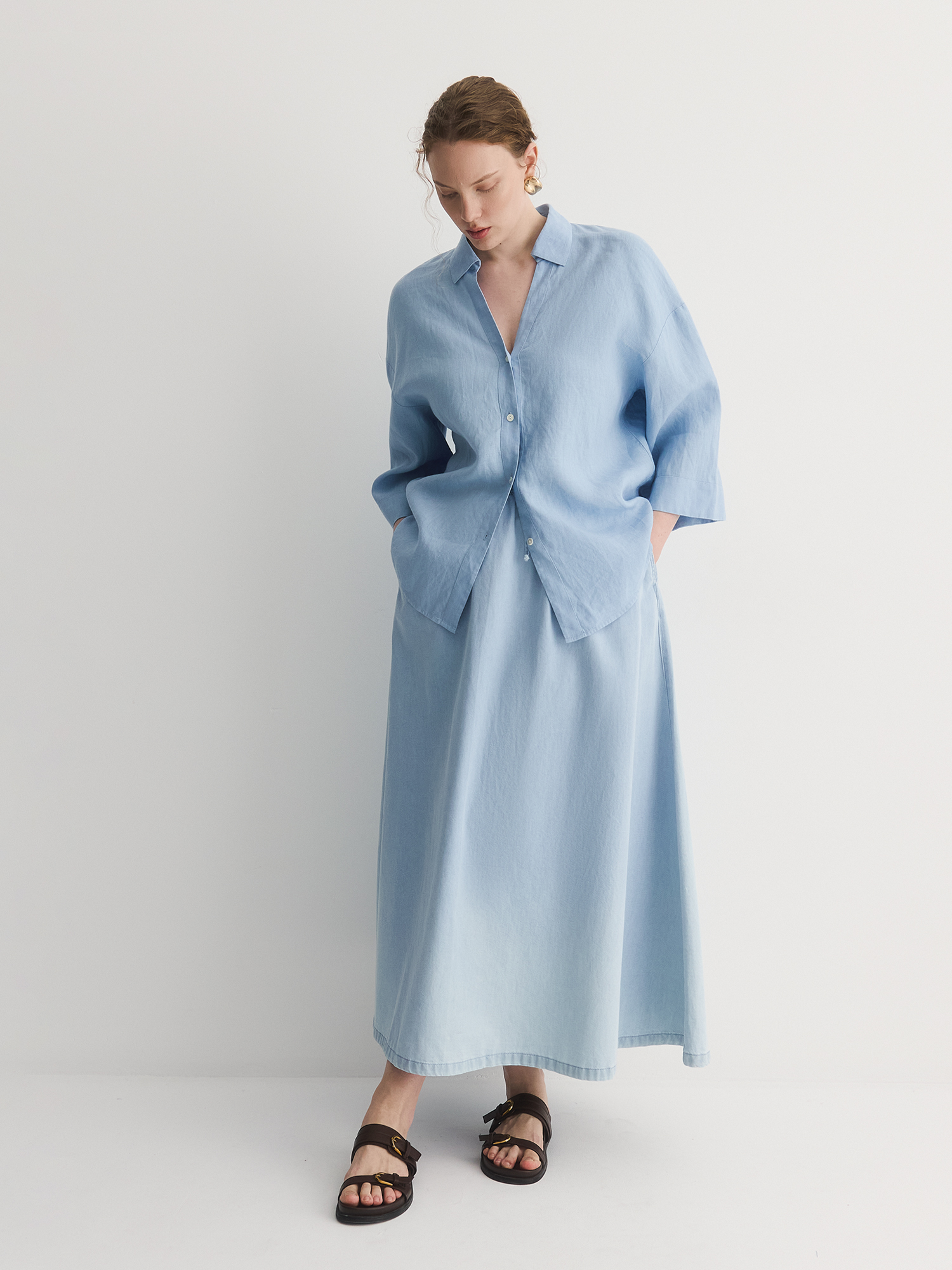 Юбка составит комплект с рубашкой BL1894Y1 для джинсового или многослойного образа.