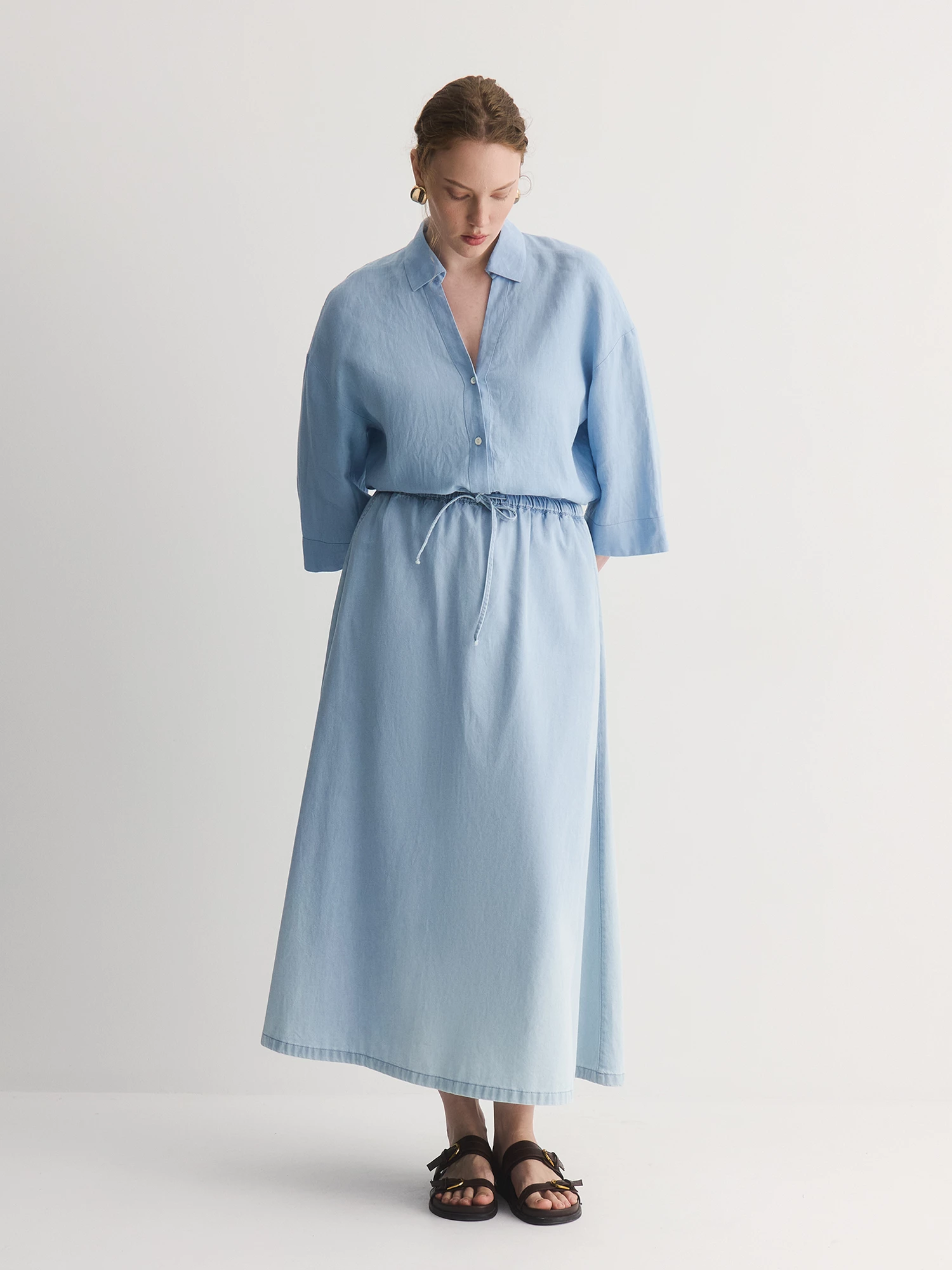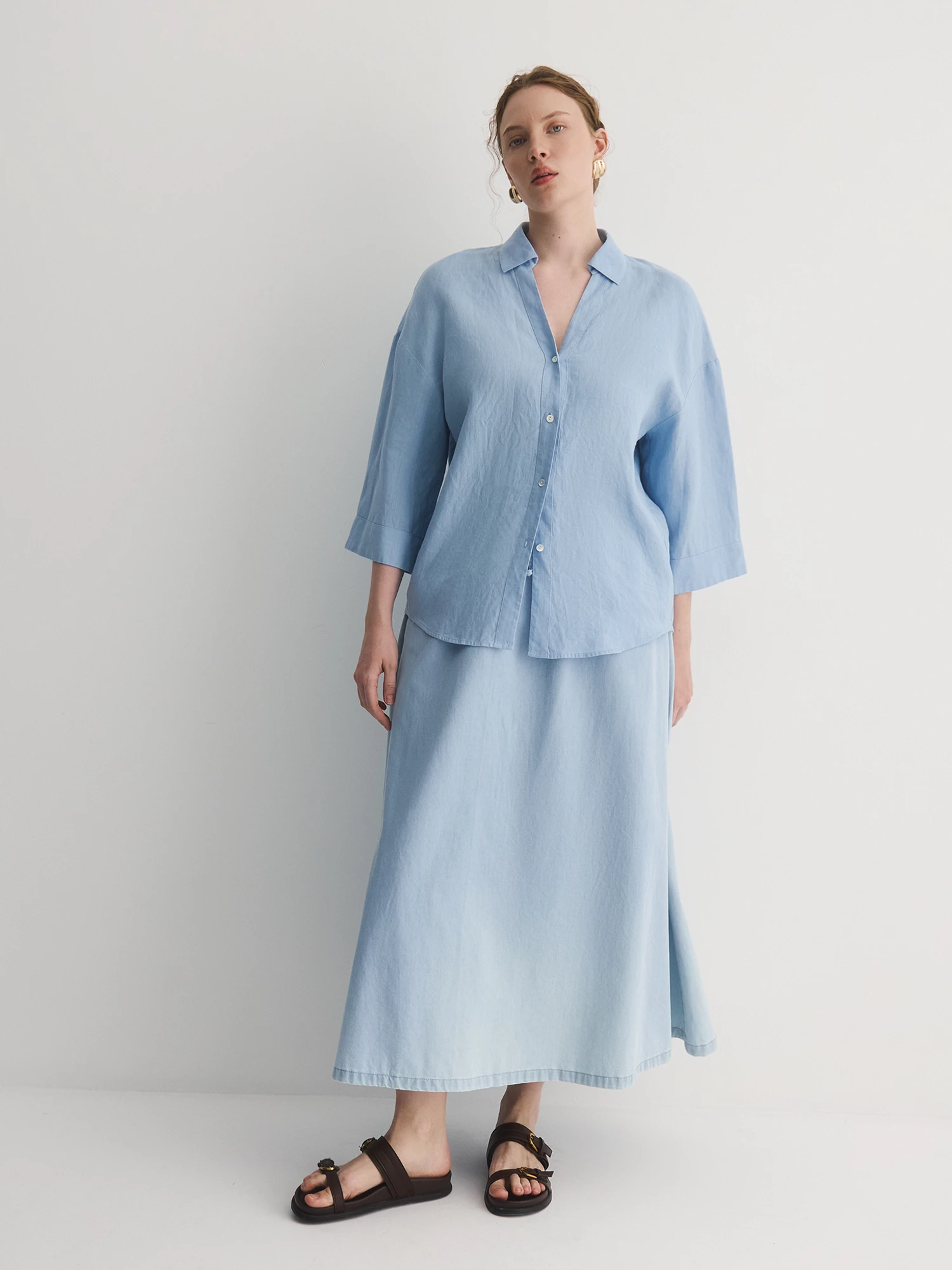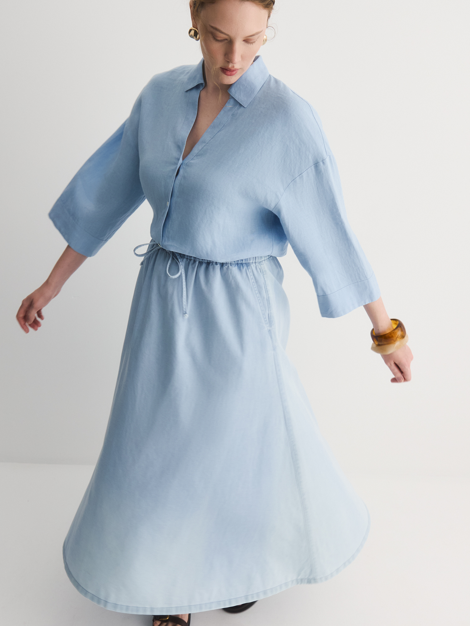 Бренд: LalisЦвет: ГолубойСостав: Хлопок - 100%Артикул: SK05376Y1Размер на модели: 50Коллекция: МОРСКАЯ ПРОГУЛКА