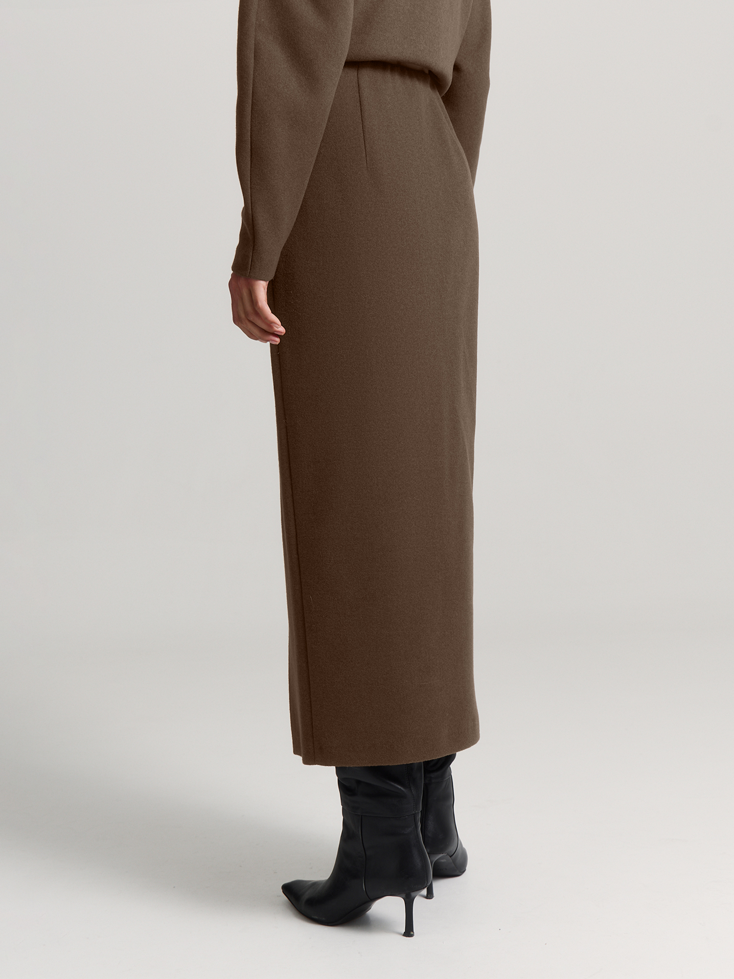 Юбка из смесового трикотажа мягко садится по фигуре и комфортна в носке. Состав ткани идеально сбалансирован: шерсть и хлопок дарят натуральный комфорт и тепло, вискоза добавляет мягкости, а полиэстер обеспечивает прочность.