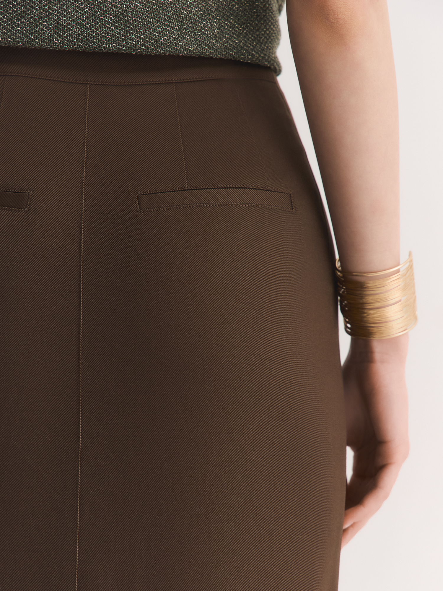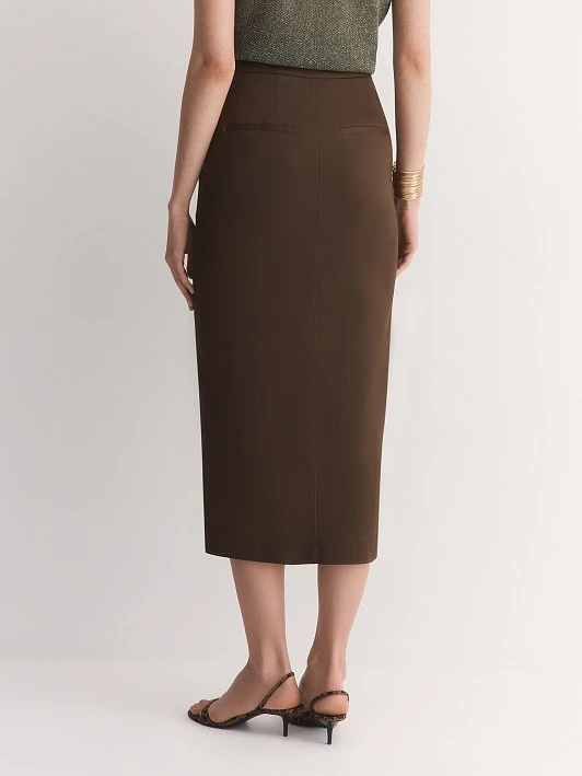 Бренд: ElisЦвет: КоричневыйСостав: Верх:Хлопок - 57%, Тенсел - 41%, Спандекс - 2%.Подкладка:Полиэстер - 100%Артикул: SK0513Размер на модели: 44Коллекция: THE SMILE OF NATURE