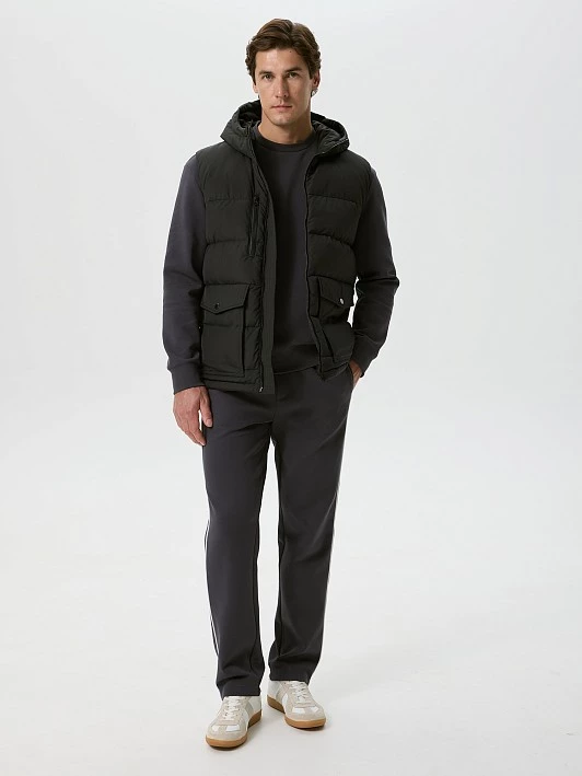 Теплый жилет-безрукавка на молнии, из плащевой ткани с влагозащитной пропиткой, подходит для осени и мягкой зимы. Качественный наполнитель из пуха и пера делает модную модель очень теплой и ультралегкой. Наполнитель равномерно распределен внутри куртки благодаря упаковке из пуходержащей ткани. У модели двойная ветрозащитная подкладка для исключения проявления пуха. Высокая стойка, удобный капюшон, корд-система с фиксаторами по низу, функциональные карманы с клапанами и боковым входом, ветрозащитный внутренний клапан и дополнительная подкладка на спине защитят от непогоды . Короткий жилет в молодежном стиле с удобным дополнительным нагрудным карманом на молнии и закругленным низом необходим в гардеробе. Базовый черный универсален. Индекс Fill Power 630-650 - это показатель натуральных наполнителей премиум-класса.