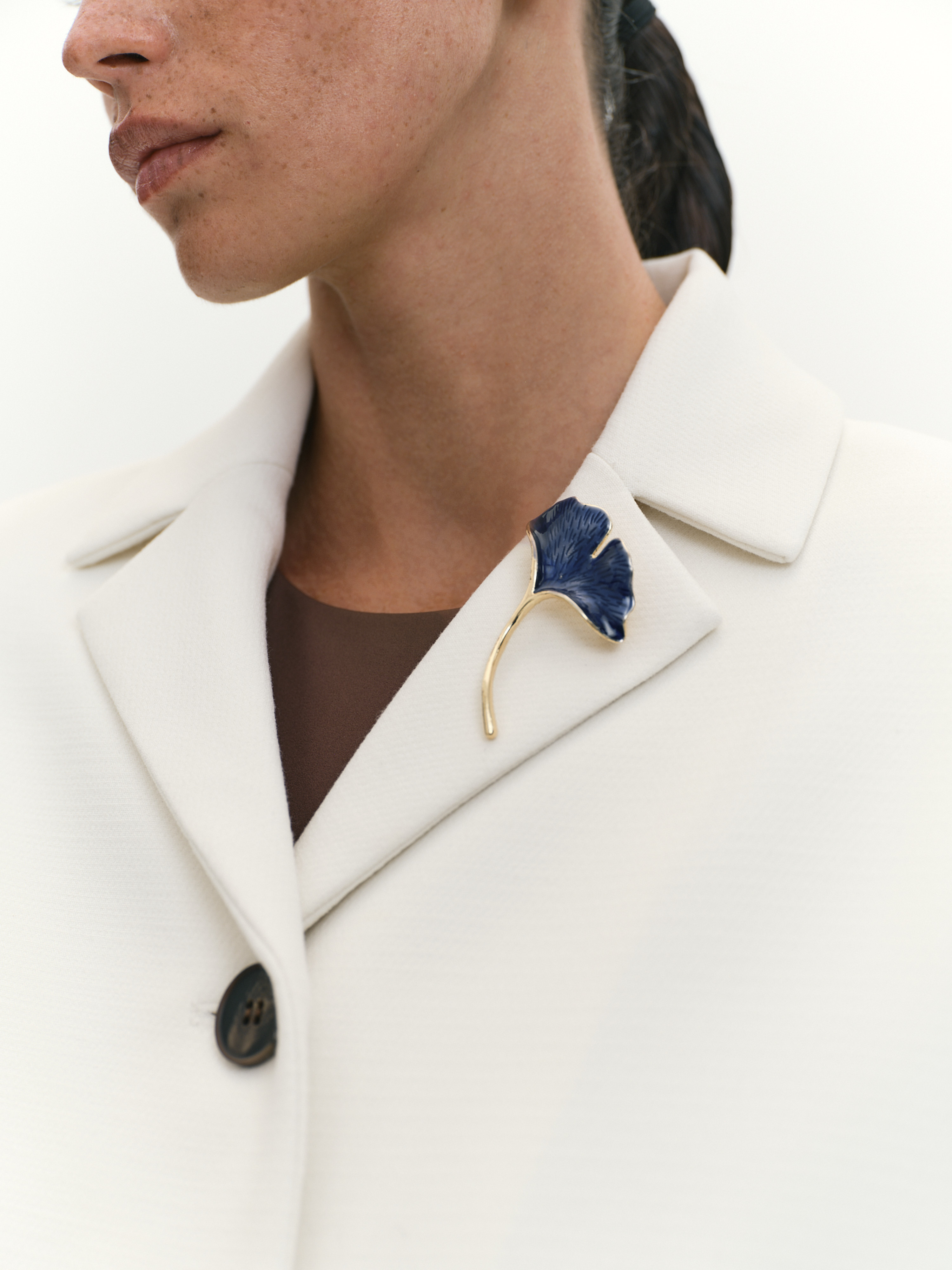 Золотистая брошь в форме листа дерева гинкго символизирует жизнестойкость и долголетие. Она прочная и переливается на свету благодаря детализированному объёмному дизайну.